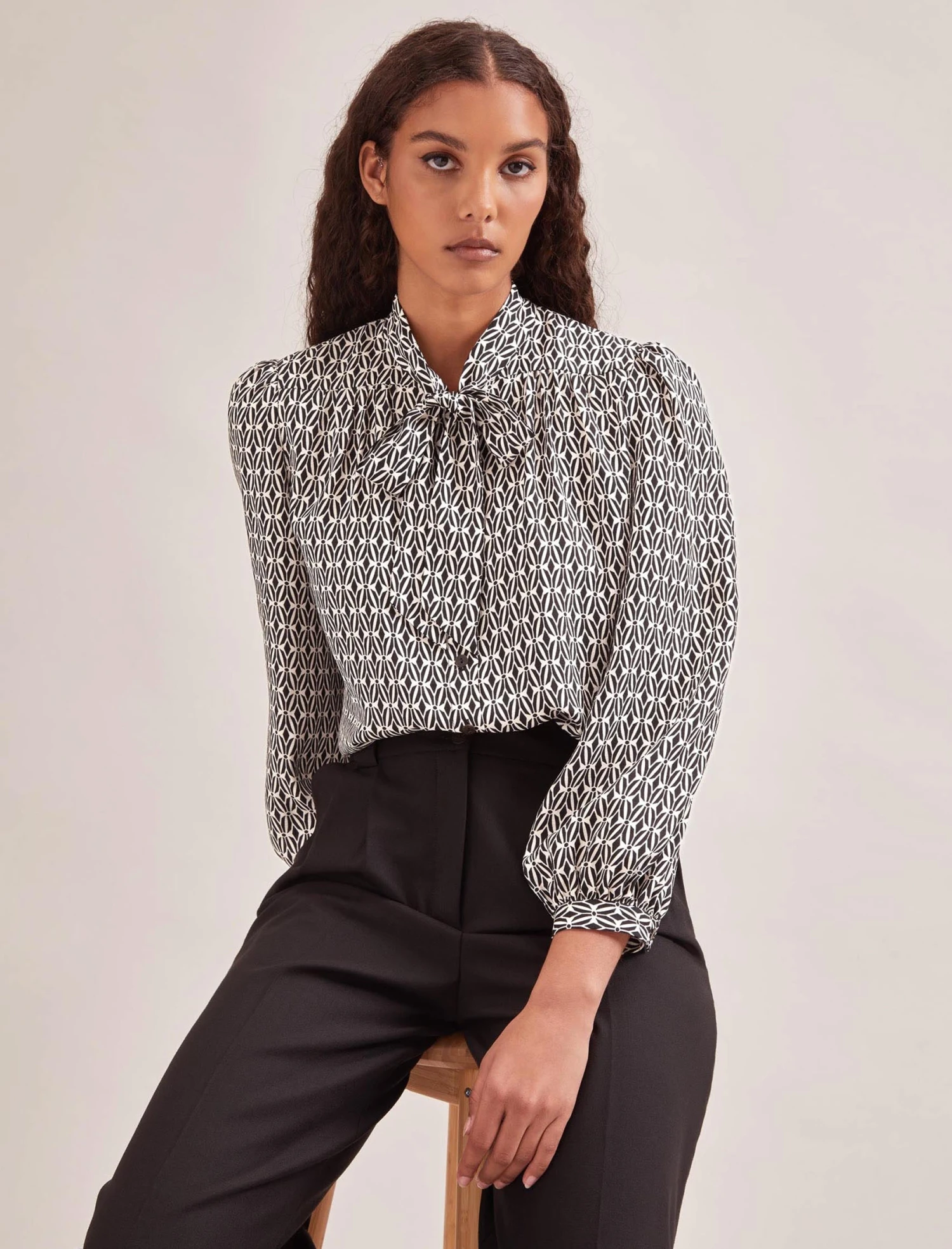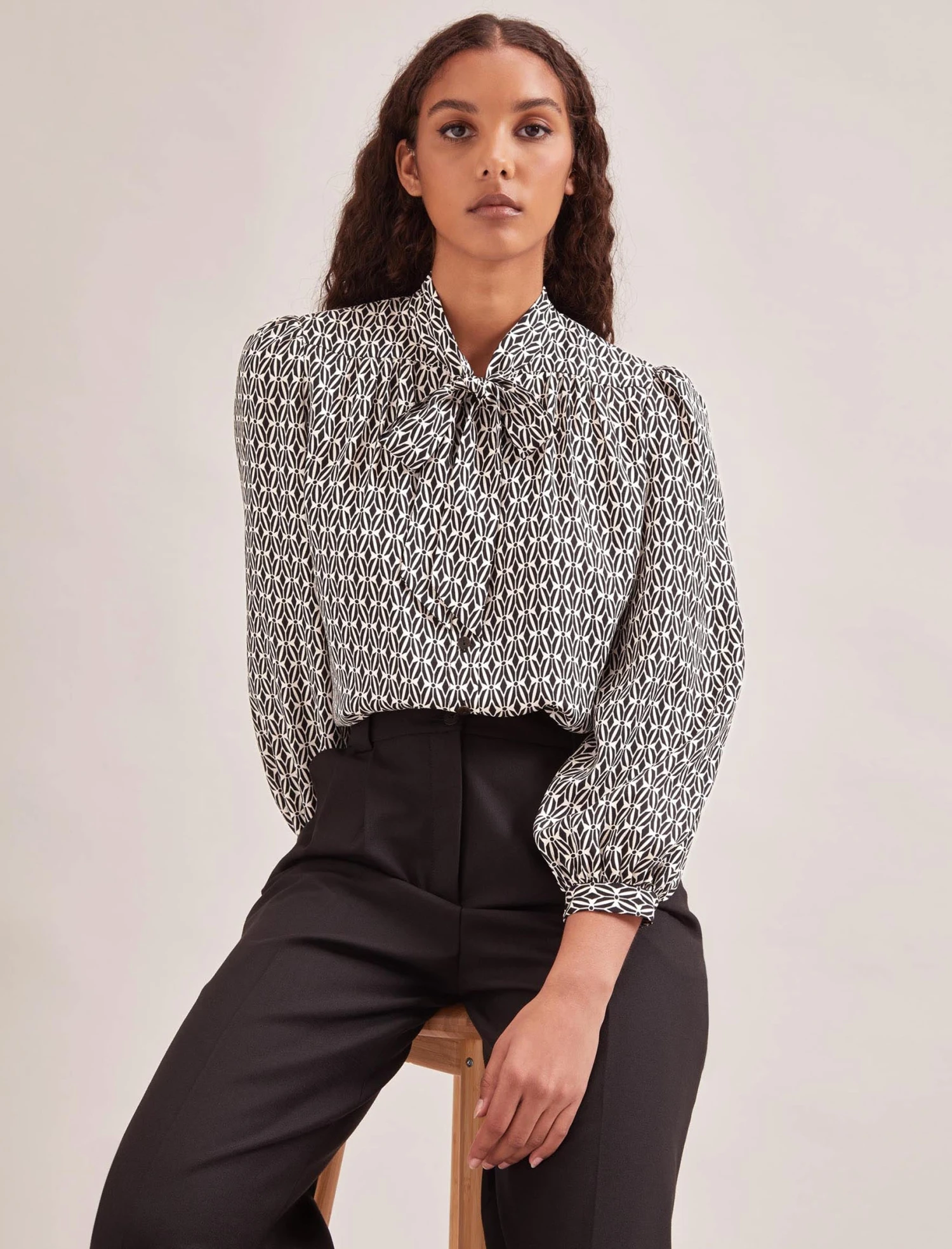 It goes without saying that day-to-night tops are a mainstay of any capsule wardrobe ā whether youāre in the office, WFH or meeting friends for drinks. And when theyāre machine-washable and crease-resistant, like Aubrey, you canāt go wrong. Adding graphic interest to smart staples, team it with our Arlo leather skirt for an edgy spin or a tailored trouser such as Terence or Clement.