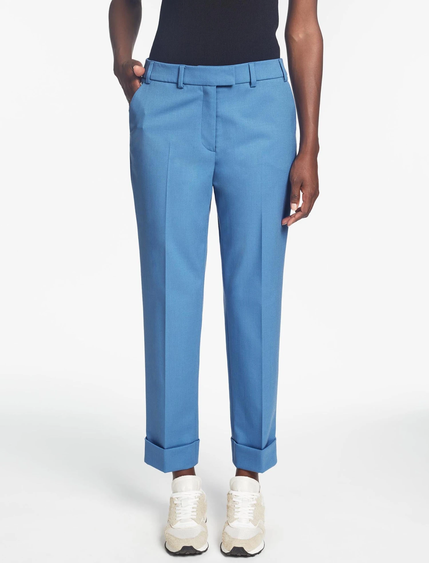 After a season of dark hues and dull days, what better than a bright-blue iteration of our much-loved Clement trouser to lift your mood and your wardrobe? This season’s Clement features the same design details, in stretch-wool suiting material with a turn-up. A great multi-tasker for work or play, simply add a crisp white T-shirt and trainer or dress it up with the matching Jamie blazer and a shirt.