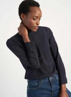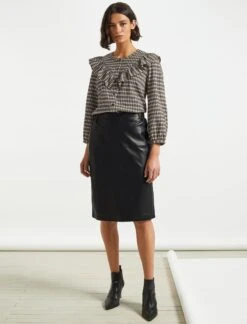 Nessa Long Sleeve Frill Cotton Seersucker Blouse – Black/Cream Check