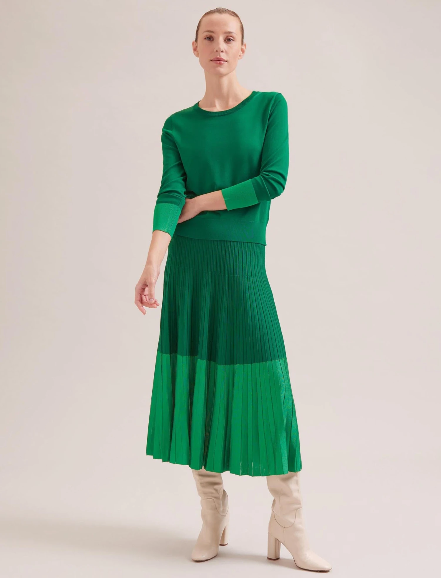 A swishy pleated skirt brings some feminine flair to spring-to-summer dressing. Cut from a rayon-blend knit, our Spring 2024 Colette skirt is lightweight, machine-washable and easy to maintain thanks to the permanent pleats. Wear with the matching Colette top for smarter work or lunch days or separately with a simple vest or T-shirt.