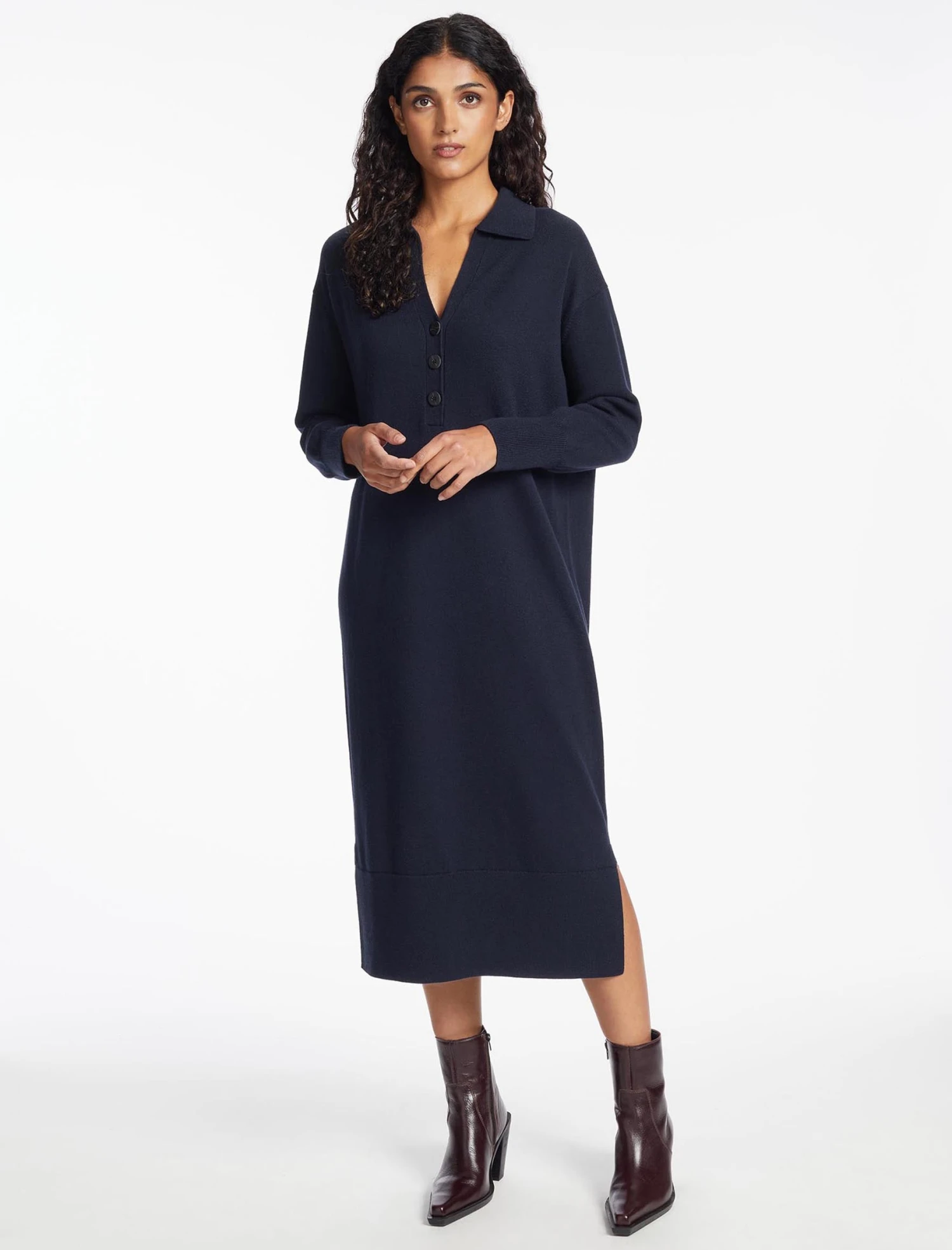 There are some days when looser shapes are the only styles you want to wear. Enter Eleanor. This oversized knitted dress is cut from a wool-and-cotton blend that’s ideal for spring climes. The no-nonsense design features drop shoulders, a cutaway neck and collar and side split, making it ideal for slouchy weekend days or relaxed pub lunches.
