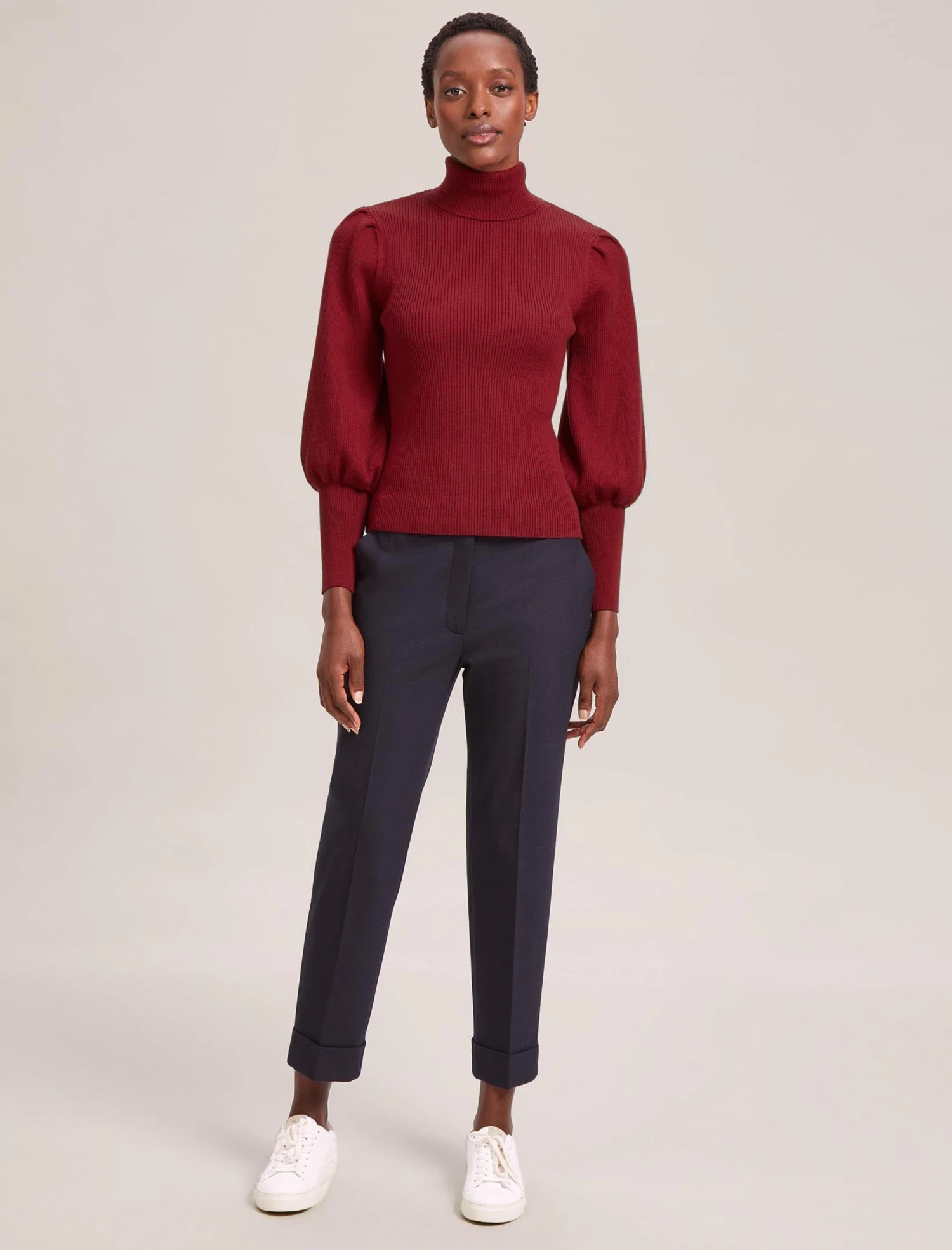 With its rollneck and shapely blouson sleeves our new Eva knit hints at the 1970s bourgeois dressing trend and pairs perfectly with a pencil skirt or a pair of sharp tailored trousers. We’ve spent hours on the cut ensuring the fit is perfect and with its full rib, it’s as comfortable as it is stylish. Made from merino wool, it’s also surprisingly practical, being machine-washable and pill-proof.