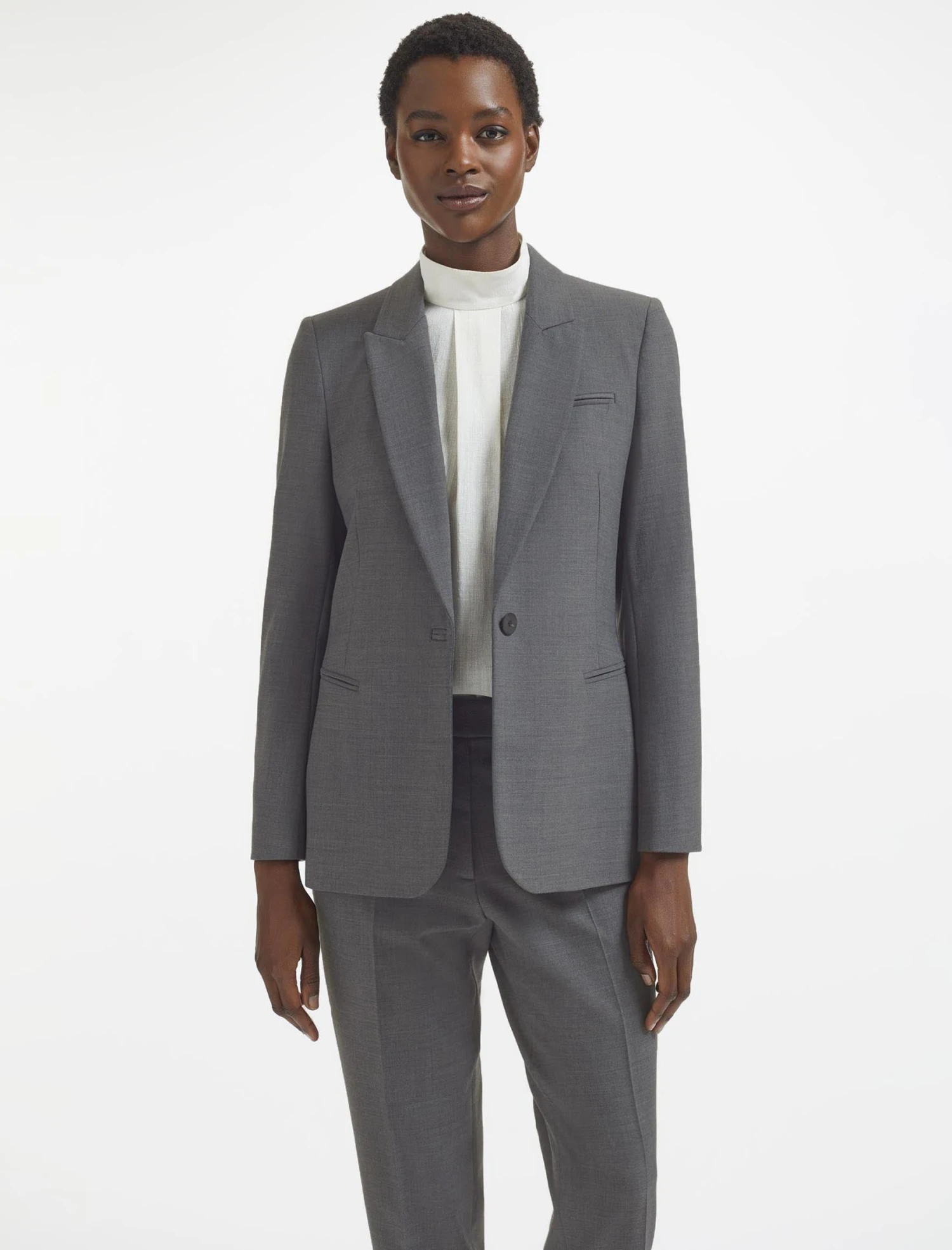 Taking its style cues from traditional men’s suiting, our best-selling Jamie blazer is a classic single-breasted silhouette with light shaping through the waist and softly padded shoulders. Cut from stretch wool blend suiting that looks as good at the end of the day as the start, work it 9-5 with one of our tailored trouser shapes, a white T-shirt and crisp trainer.