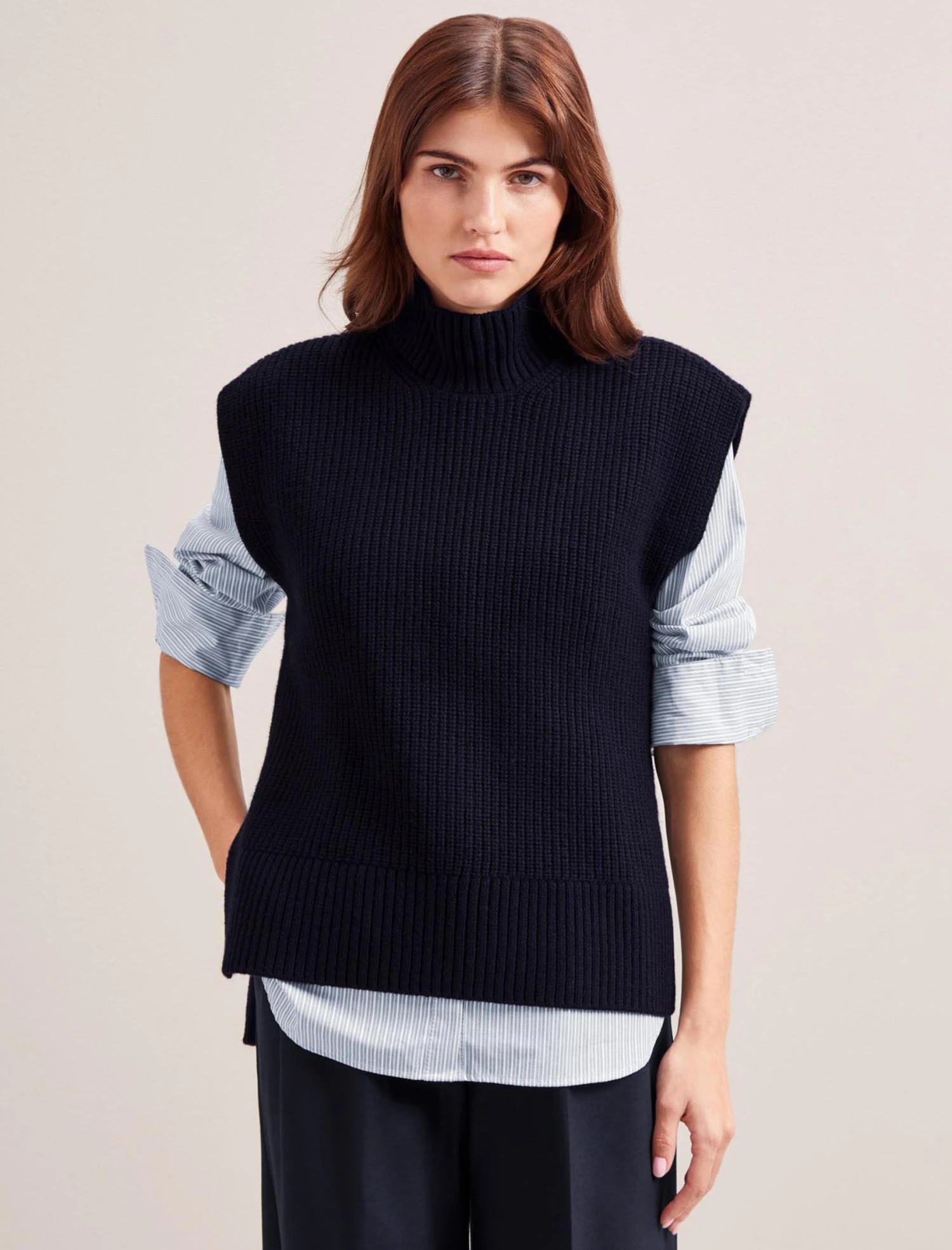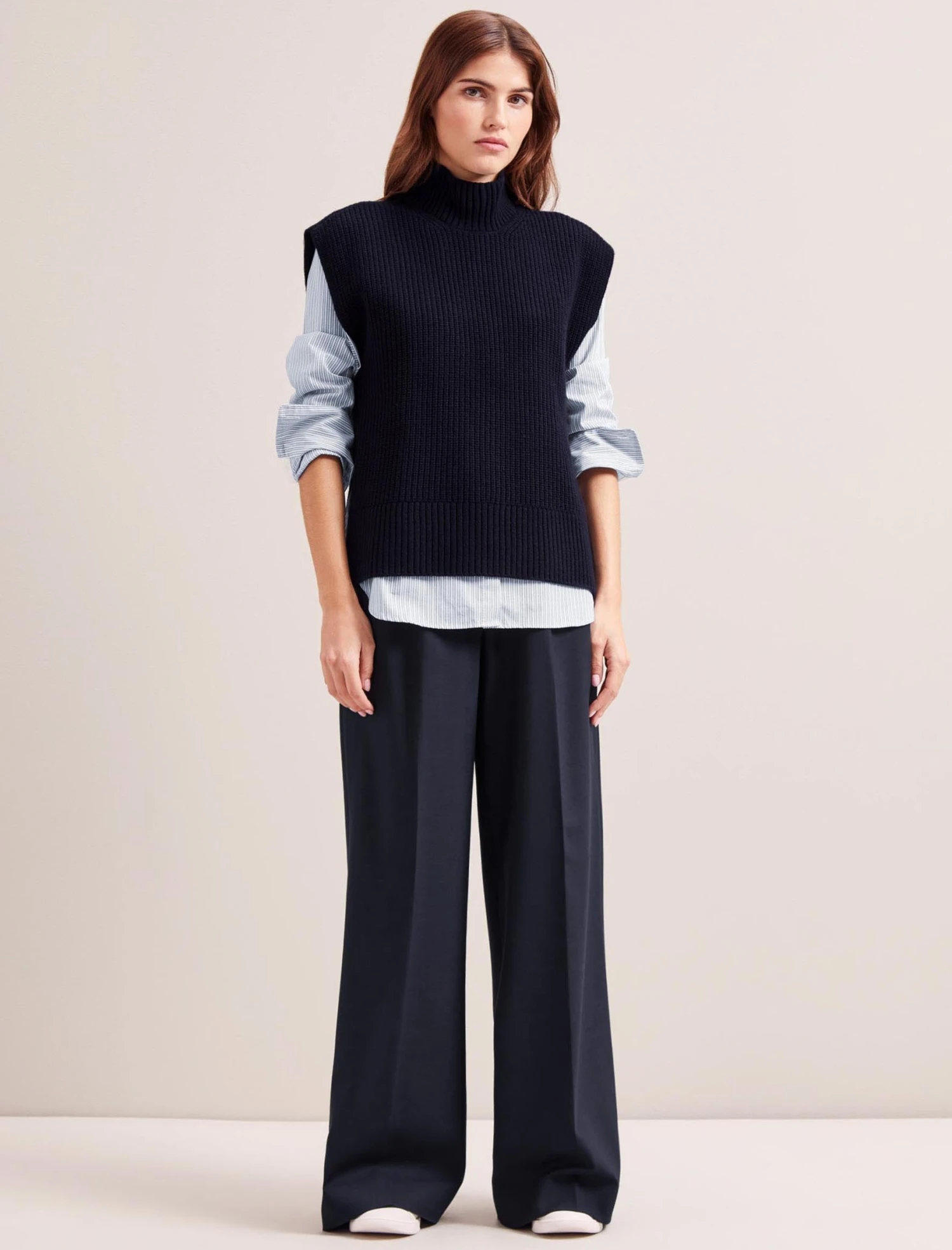 Our hero Janice sleeveless jumper is the ultimate on-trend solution for keeping warm. Knitted in a machine-washable merino wool blend, it layers perfectly over a dress, jumpsuit, blouse or shirt without hiding a pretty sleeve, making it an endlessly wearable transeasonal piece.