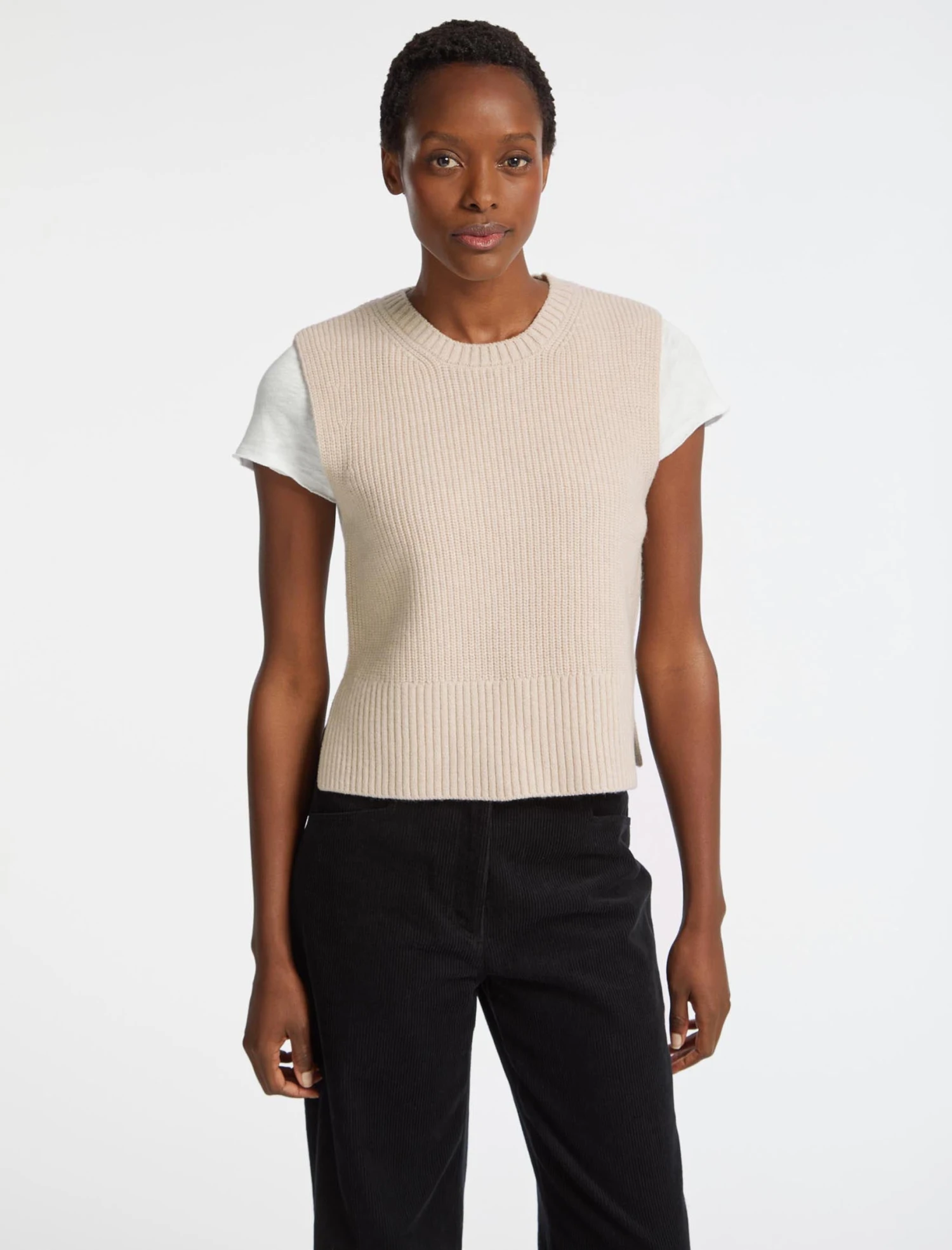 Our bestselling Janie sleeveless knit neatly combines wearable ease, versatility and style. A brilliant layering piece, the fully fashioned armholes ensure it sits snugly over any sleeve – whether a tailored shirt, silk blouse or dress – and under a blazer on chillier days.