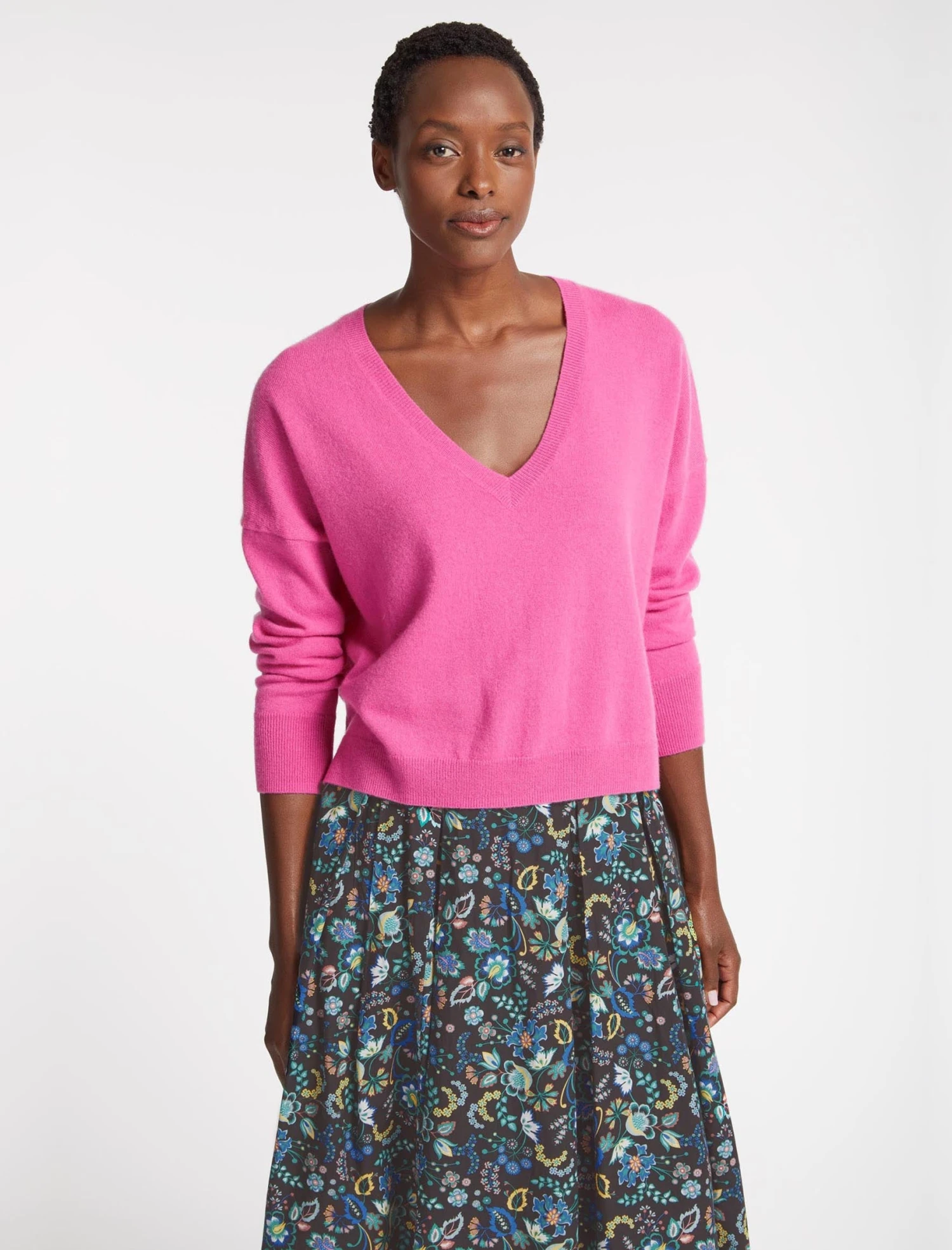 Summer may not instantly say knitwear, but a few mid-to-lightweight jumpers are key to the Great British Wardrobe. Our 100% cashmere Joely jumper is cut to a boxy fit with easy raglan sleeve and a curved hem, making an ideal cover-up on cooler days.
