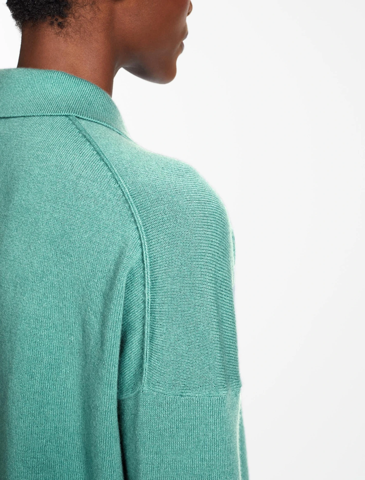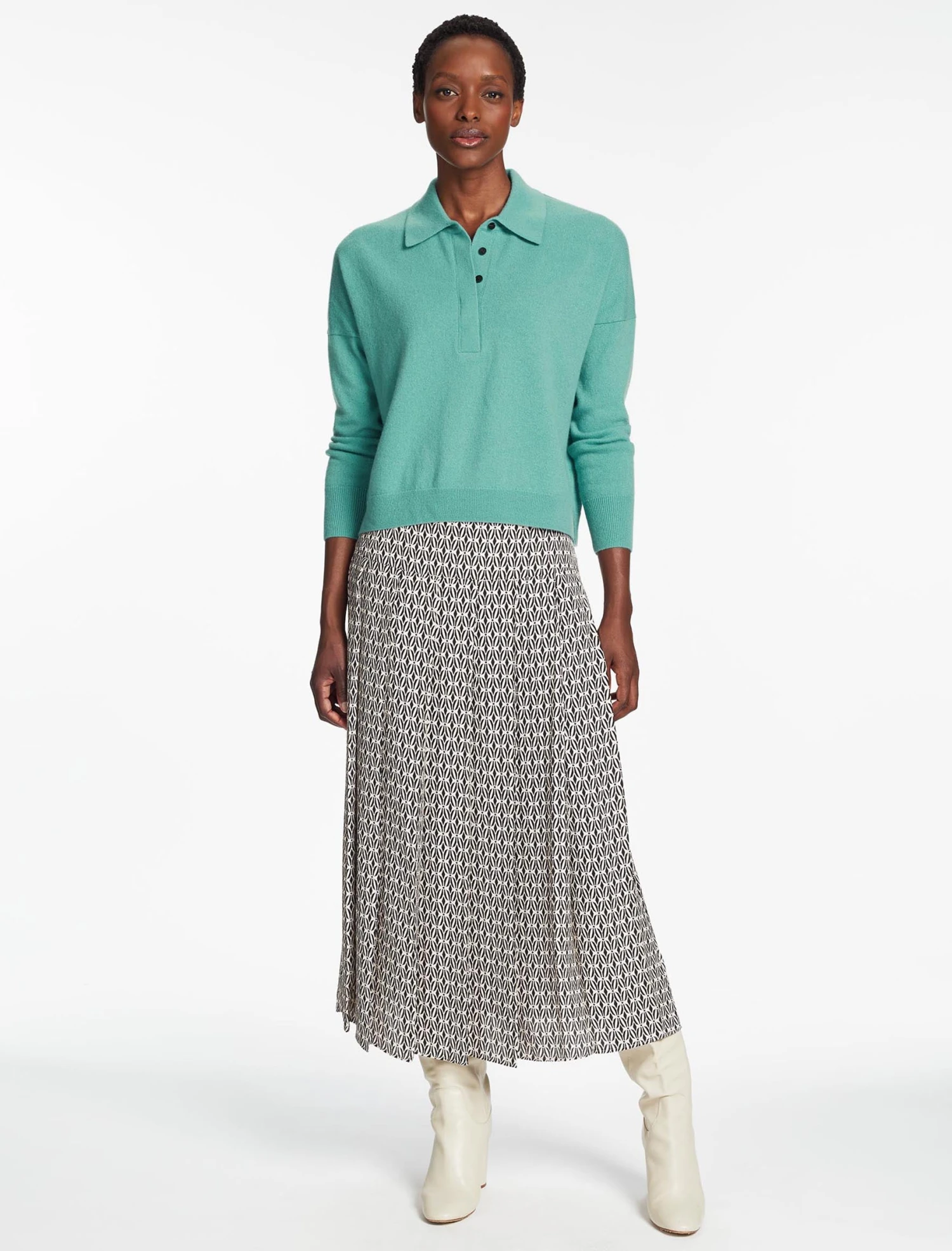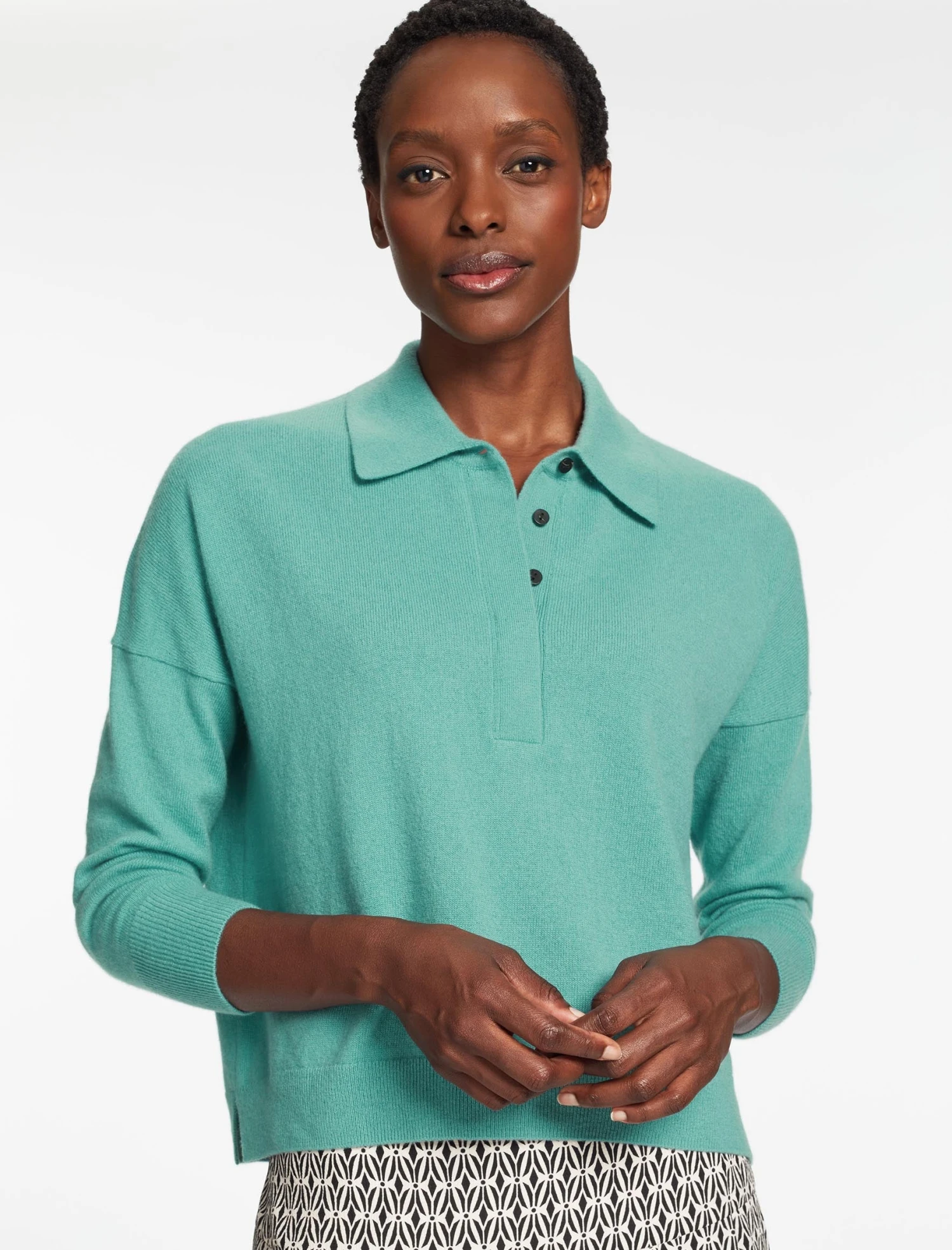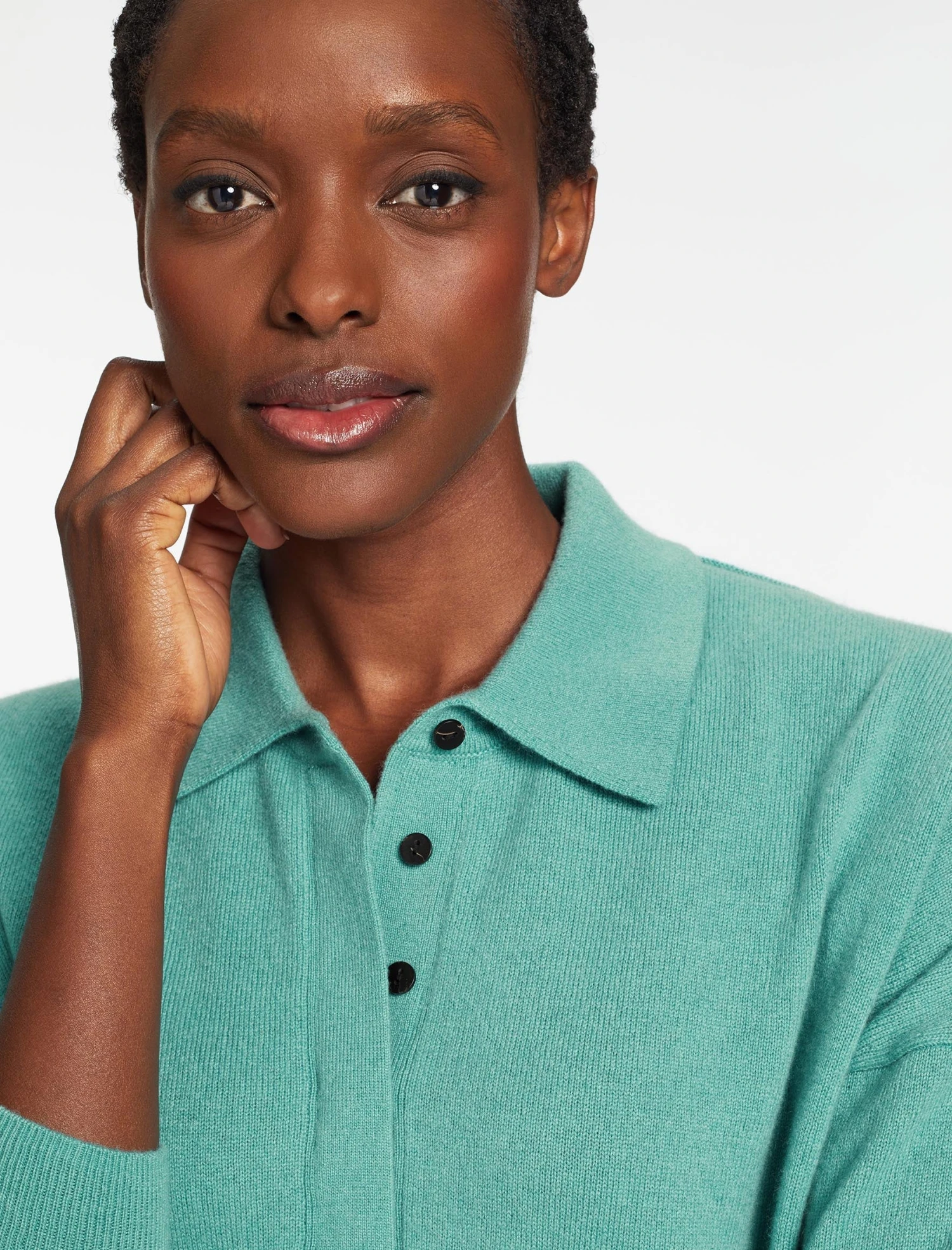 The beauty of cashmere is that it is light enough to take you into spring. Kelly’s loose, boxy shape and lofty texture keep it airy and breathable. The concealed placket and collar give it a smart edge that works well with skirts or a tailored trouser.