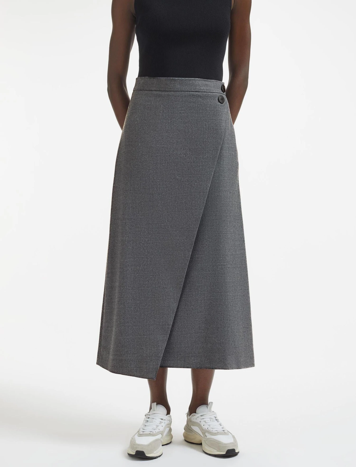 Back by popular demand, the super-cool Layla maxi wrap skirt ticks both the work and play boxes. Designed in our wool suiting fabric with a hint of stretch, the wrap is stitched down so it won’t gape, and it has an elasticated back waist for easy wearability. Style with a crisp white shirt and heeled boot for an on-trend daytime look, dress up with a silk blouse or soften with a pointelle knit.