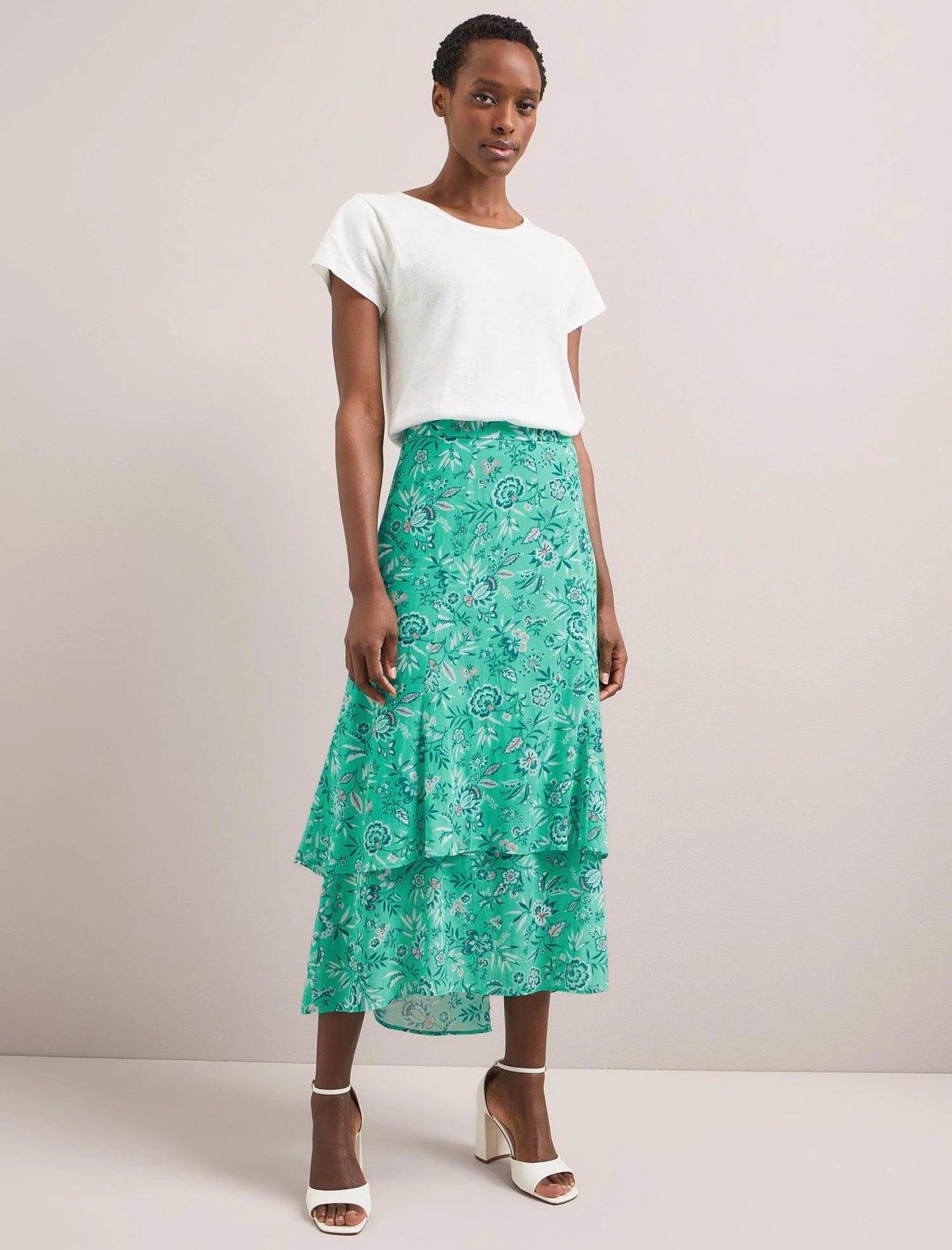 No summer wardrobe is complete without a floaty floral skirt. The Lotta has an elegant, fluted silhouette with feminine tiers and a dipped hem, so it moves beautifully as you walk. Style for warm weather with a crisp white tee or sleeveless knit, pairing with cashmere on cooler days.