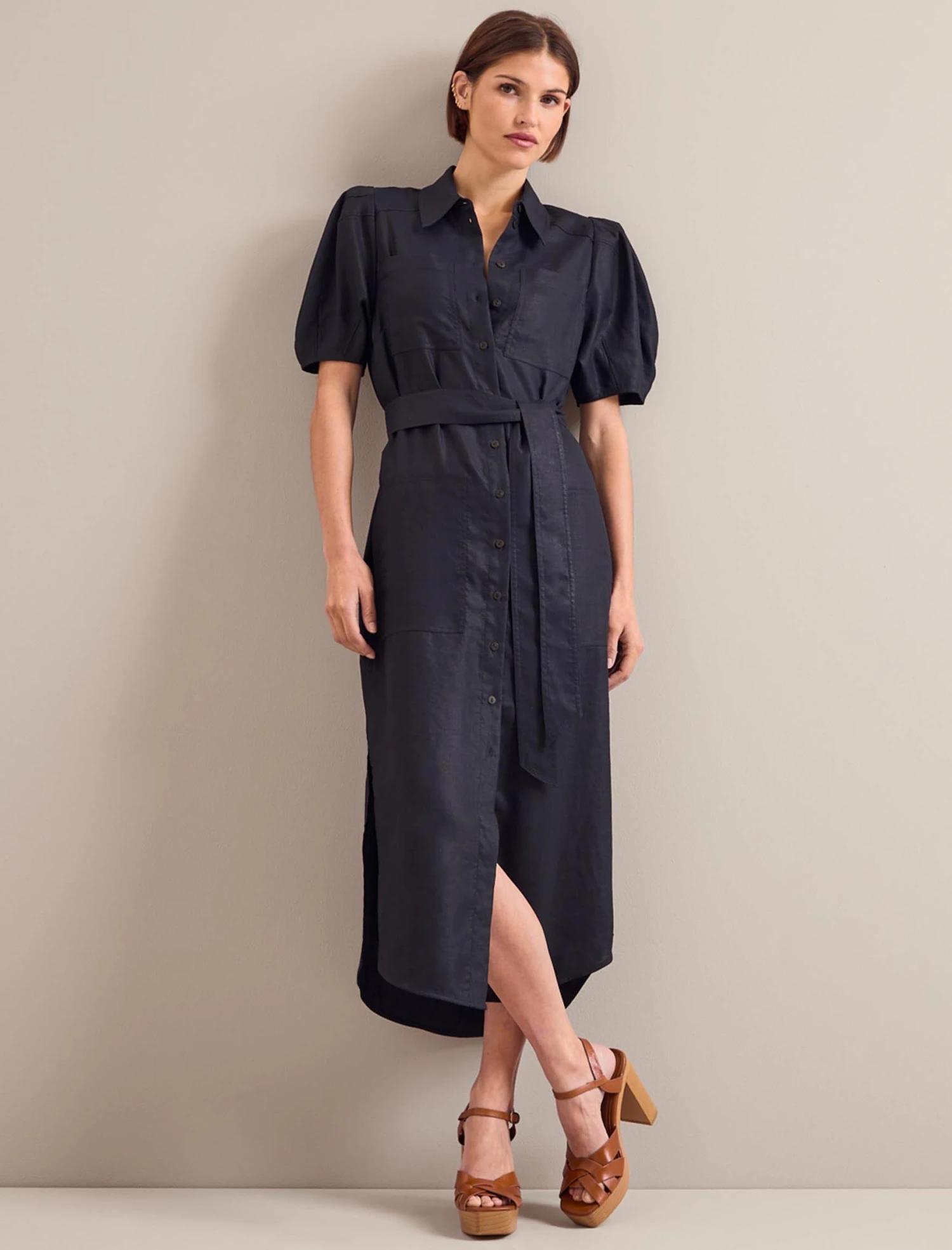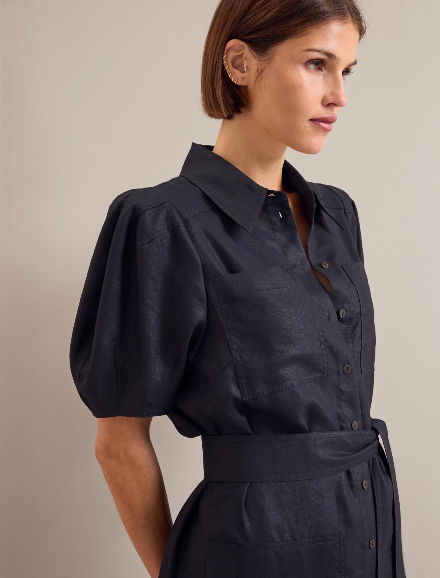 The pulled-together appeal of a shirt dress ensures it never goes out of style. Designed in Techni-Linen, our wonder fabric which looks like its namesake but is crease-resistant and machine-washable, Lyra features a removeable sash belt, pockets, overstitch detailing and a voluminous sleeve to add a modern twist to classic utility styling.