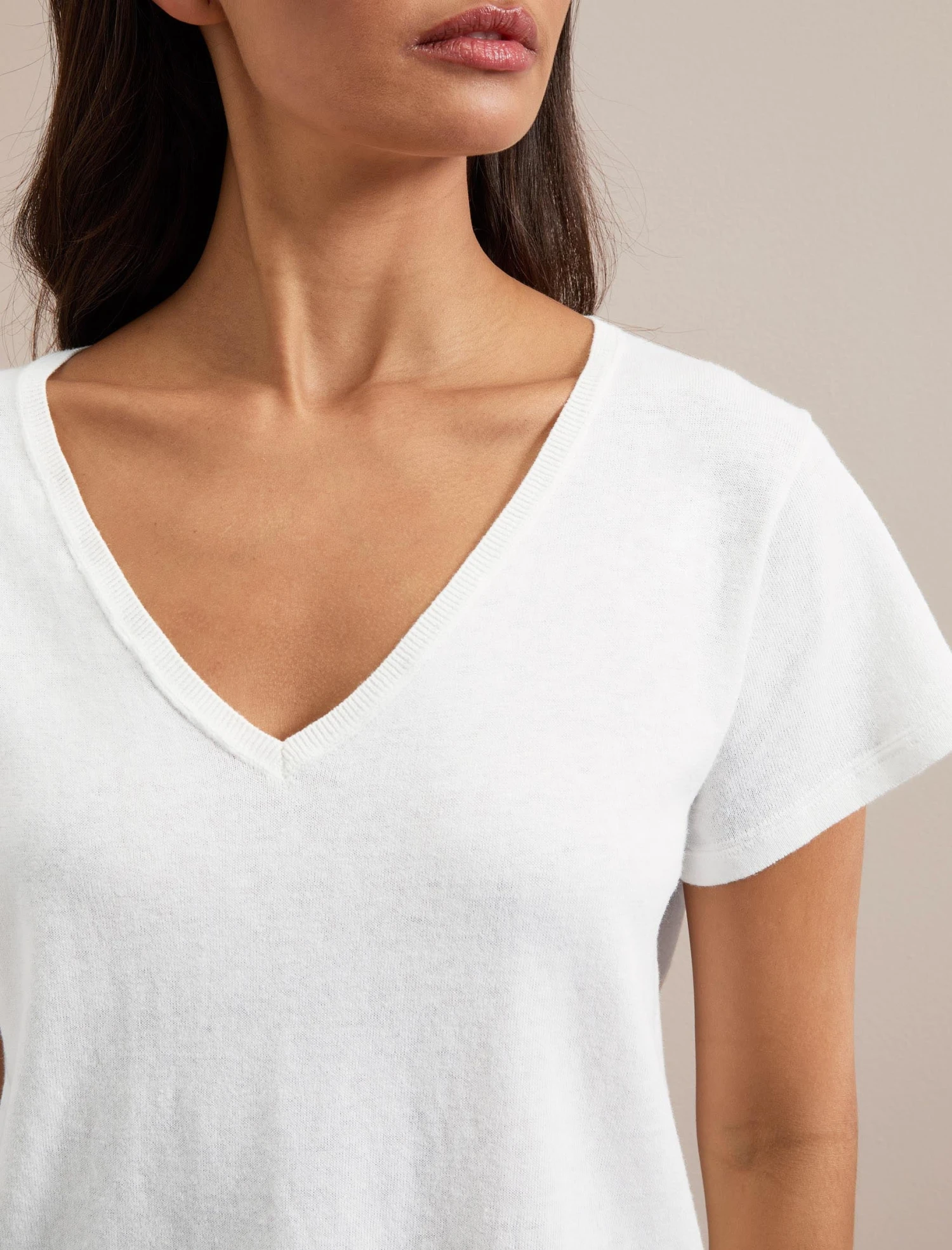 Anything but basic, our Madison T-shirt is knitted in a fine cotton linen blend that is cool and luxurious to wear. Knowing the power of a great tee as a summer wardrobe building block, we have obsessed over the fit to make sure it’s next-level– not too big or too small, the ideal length to be worn tucked or untucked, and the perfect V-neck for just the right amount of décolletage.
