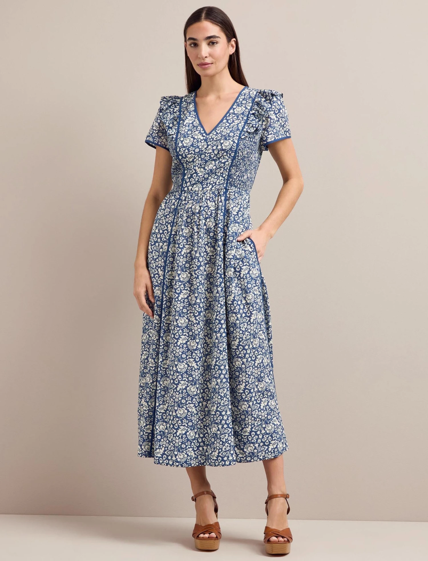 Unashamedly girly with its shirred bodice and frill shoulder, Maeve is a suitcase essential for summer sundowners, holiday date nights and far-flung parties. We invested hours in perfecting the beautifully light cotton voile blend to keep you feeling cool and elegant on long sunshine filled days.