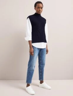 Nothing says relaxed ease quite like a seersucker skirt. Ideal for day-to-day wear, the elasticated waist, handy side pockets and tiered skirt ensure it’s both functional and fashionable. The smart check print in navy and green pairs well with our Janice knit and Wesley waistcoat.
