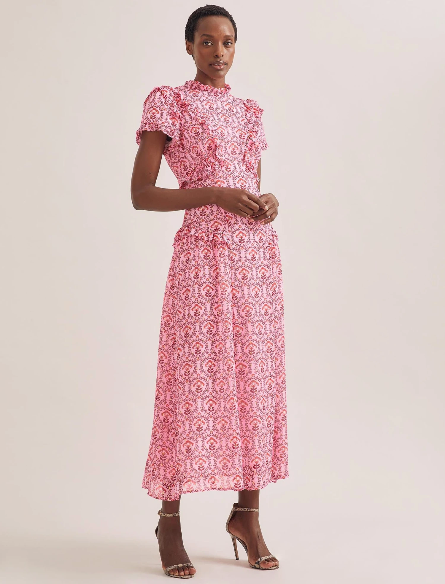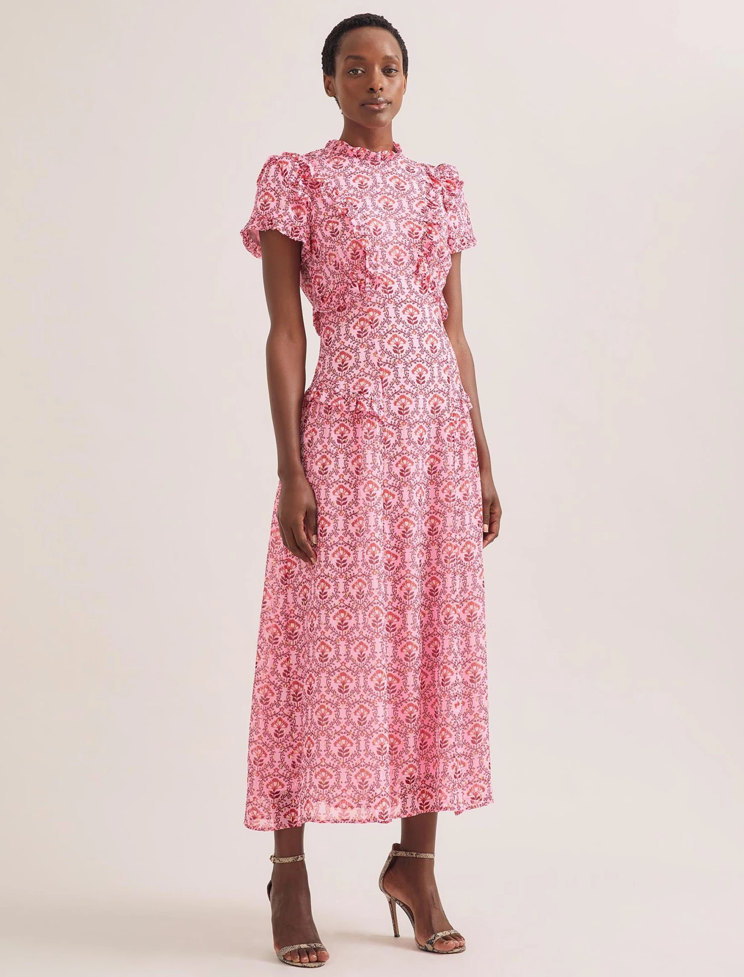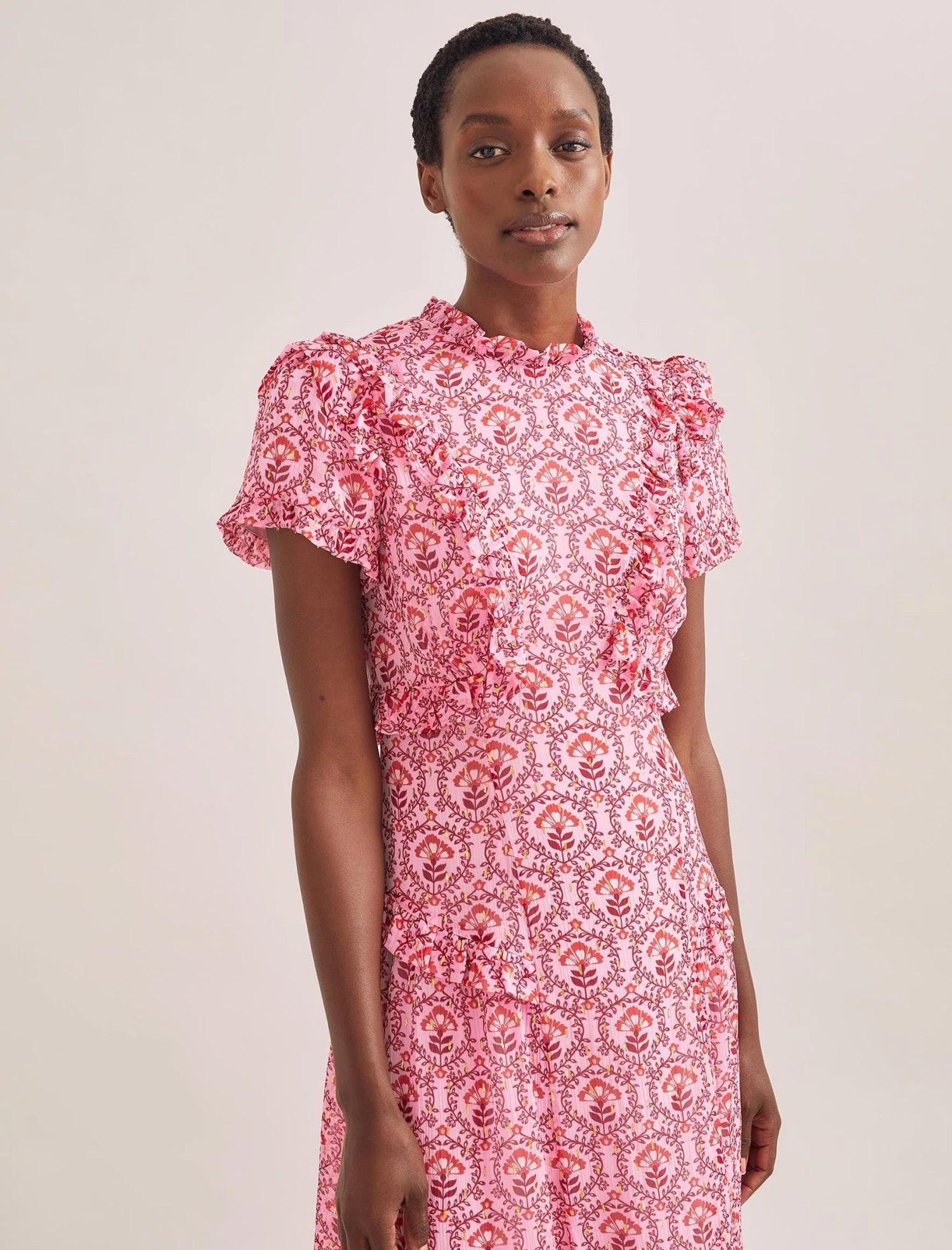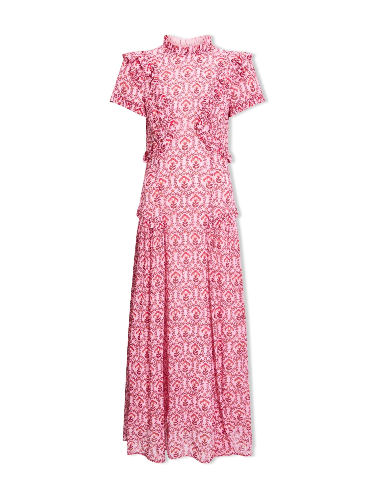 Designed in delicate georgette with shimmering gold metallic fil coupé detailing, Mirabel is the ultimate summer event dress. Fully lined yet light and airy, the contouring cut and frill placement is incredibly flattering making this the dress for a stand-out statement.