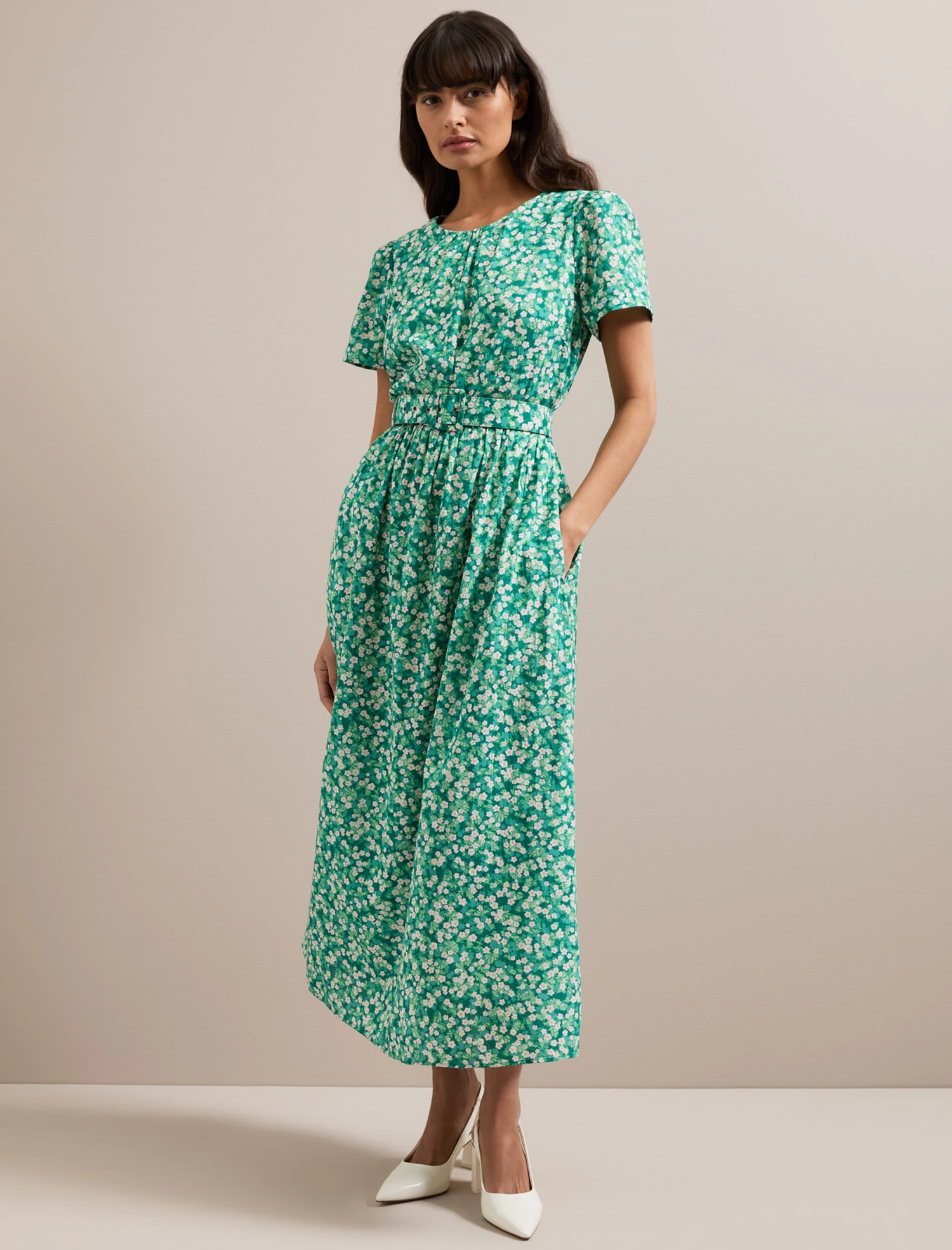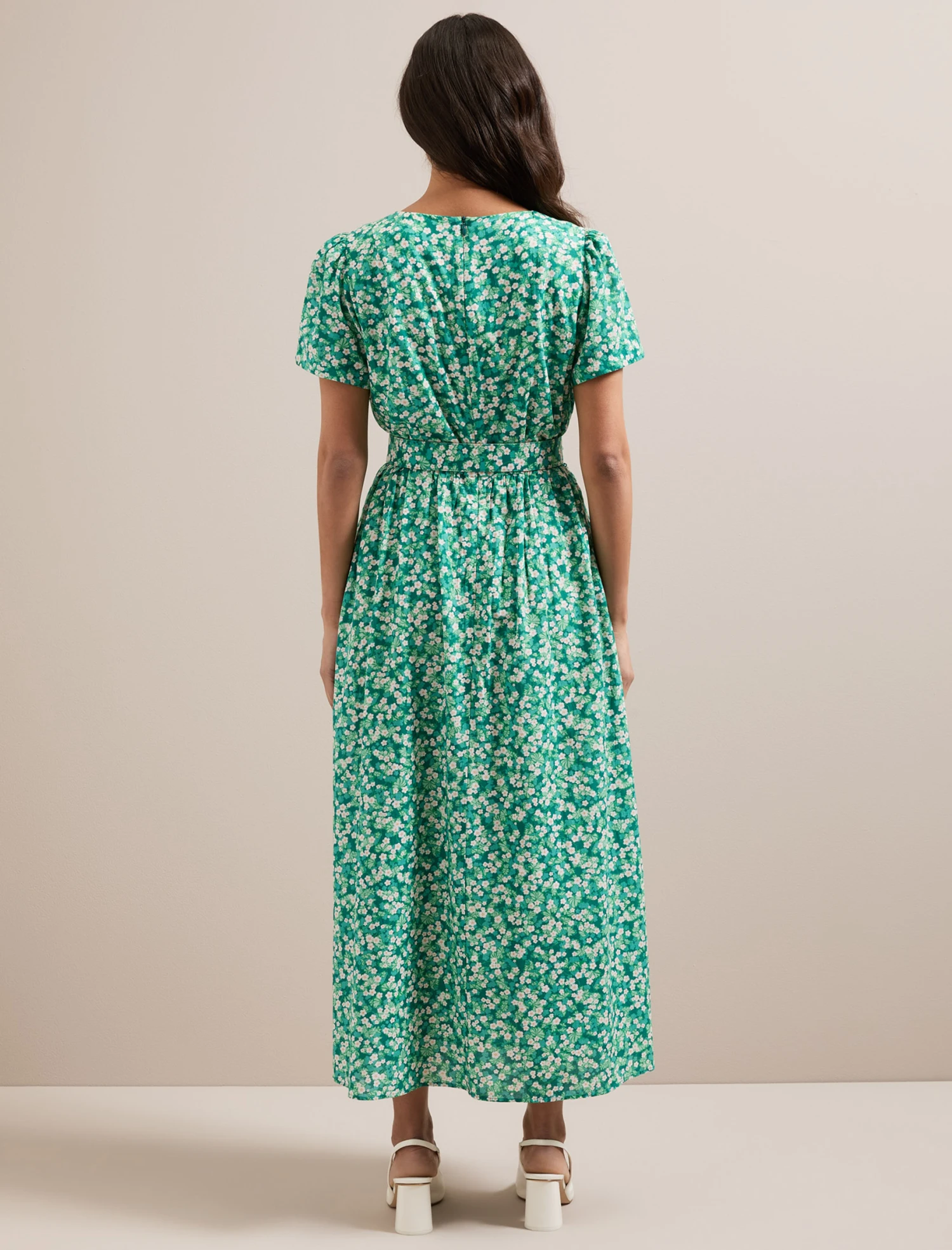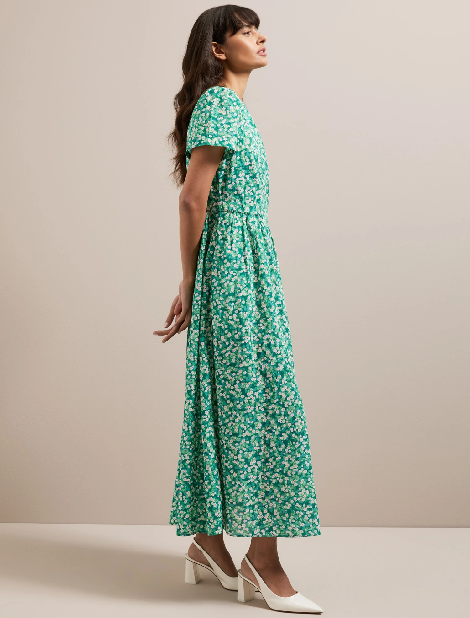 Nina Cotton Blend Maxi Dress – Mid Green Blossom Print