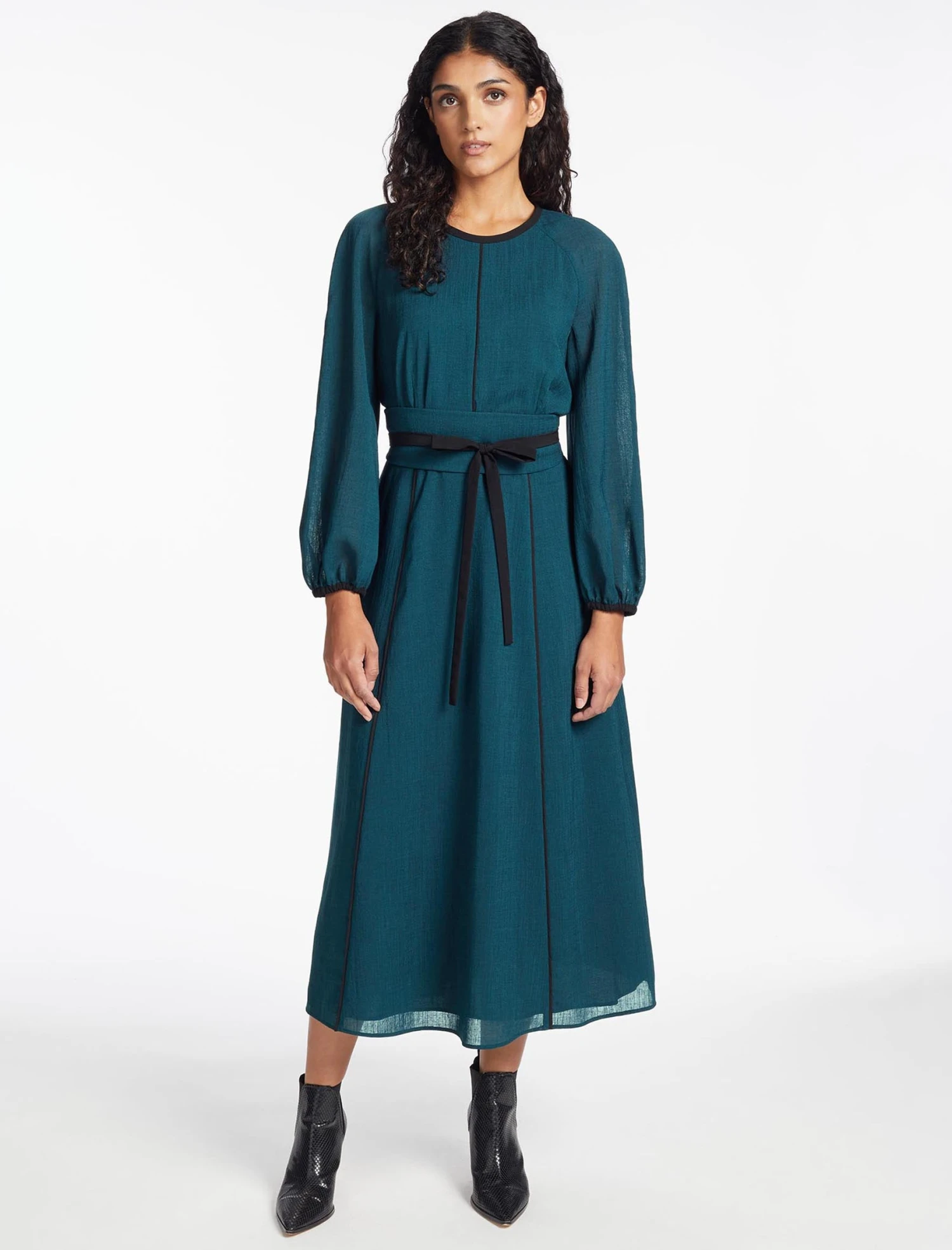 Another hero Cefinn dress to add to your officewear repertoire, Rosie is cut from Techni Voile, our crease-resistant and machine-washable hero fabric made in Japan. The raglan sleeves, waist-cinching ribbon belt and contrast trims give it a day-to-evening vibe. Pack it in your pannier or suitcase, stuff it into your gym locker, pick it up from your clothing pile…Rosie is the ultimate multi-tasker.