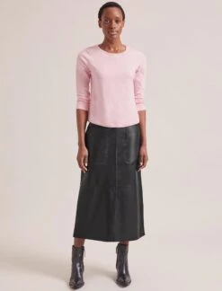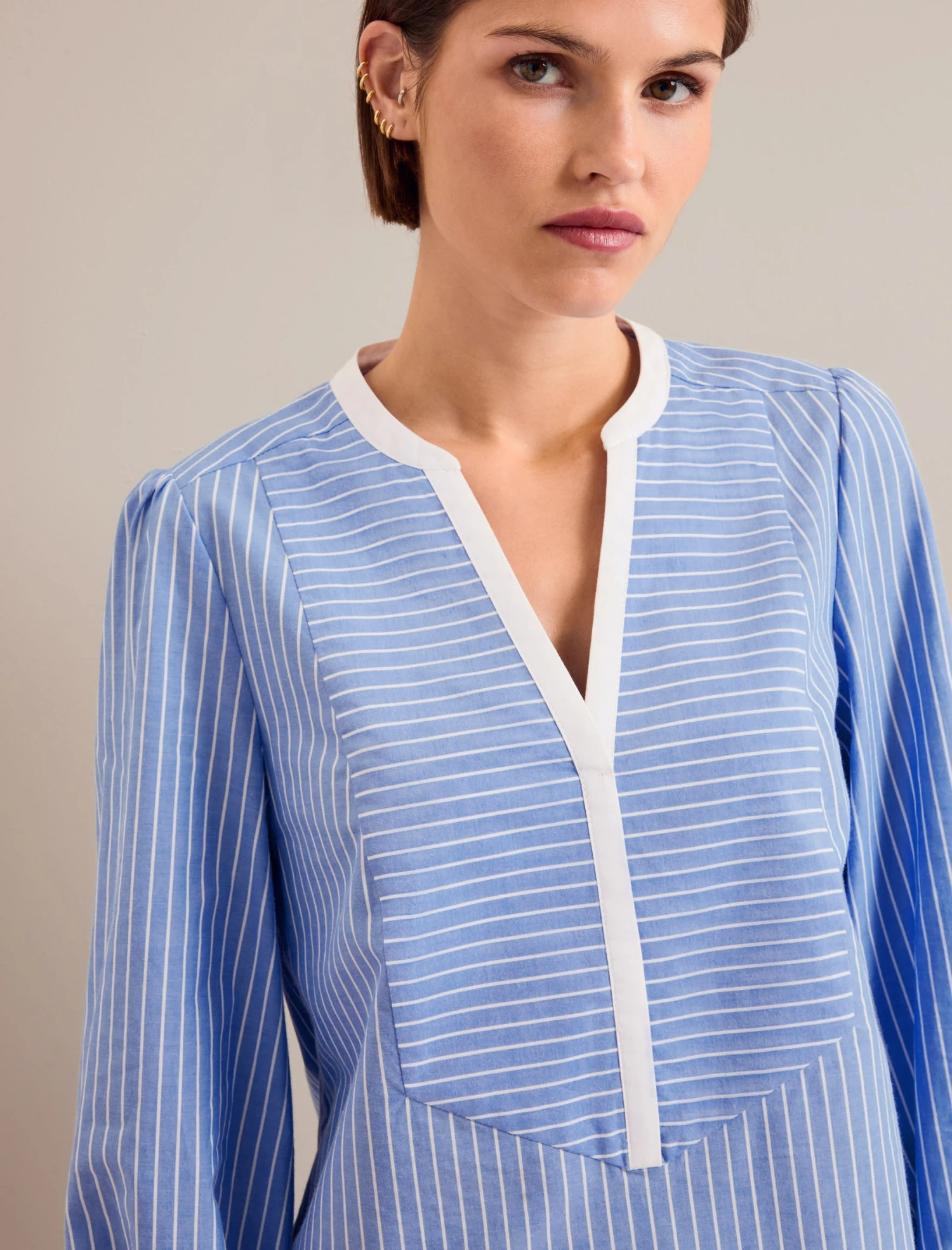 Cut from pure organic cotton in a classic pinstripe, the Sadie shirt is the perfect partner for tailoring, denim and more. Showcasing our signature attention to detail, it has a bracelet length blouson sleeve with roleaux summary, beautiful overstitching and is the ideal length for wearing tucked or untucked.