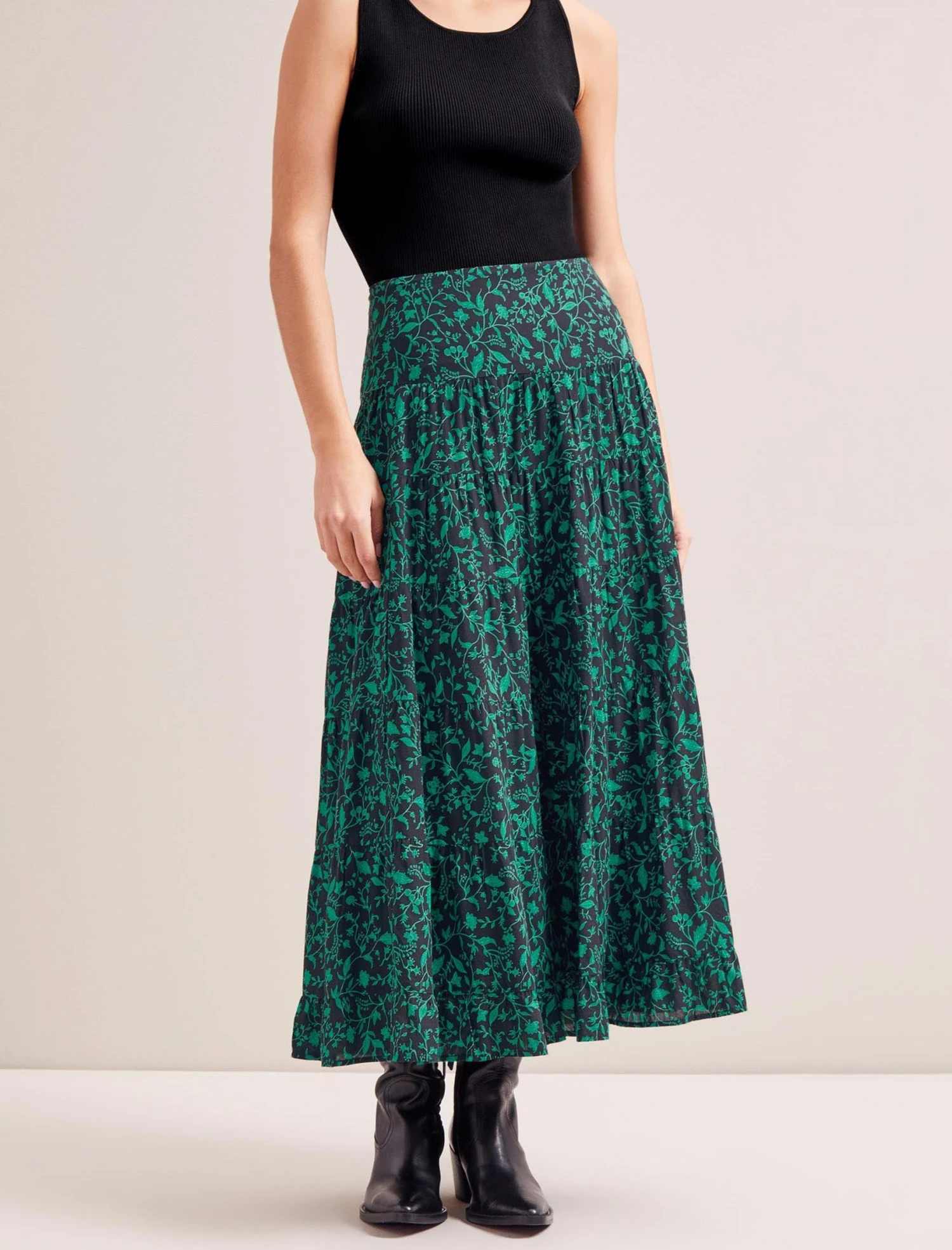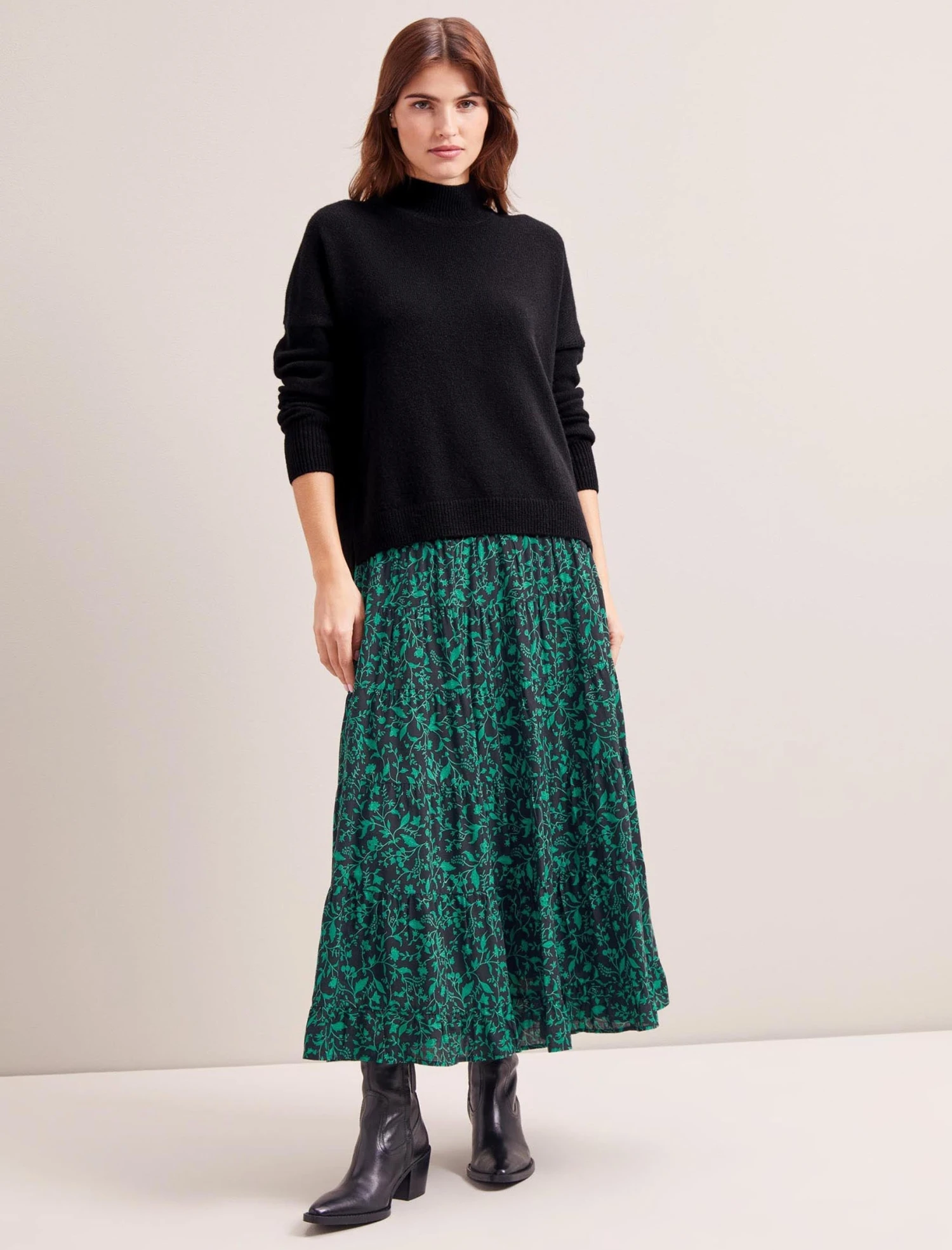 A swishy skirt instantly makes you feel pulled together, even on the dreariest of winter days. Designed in soft cotton voile, which gives it its shape and drape, our bramble-print Sawyer skirt is just the ticket. Slip on with a knit, and a trainer or long boot, for a day at the museum or a cosy pub lunch. Come the evening? Our classic Winona waistcoat and structured velvet blazer offset the fullness of the skirt.