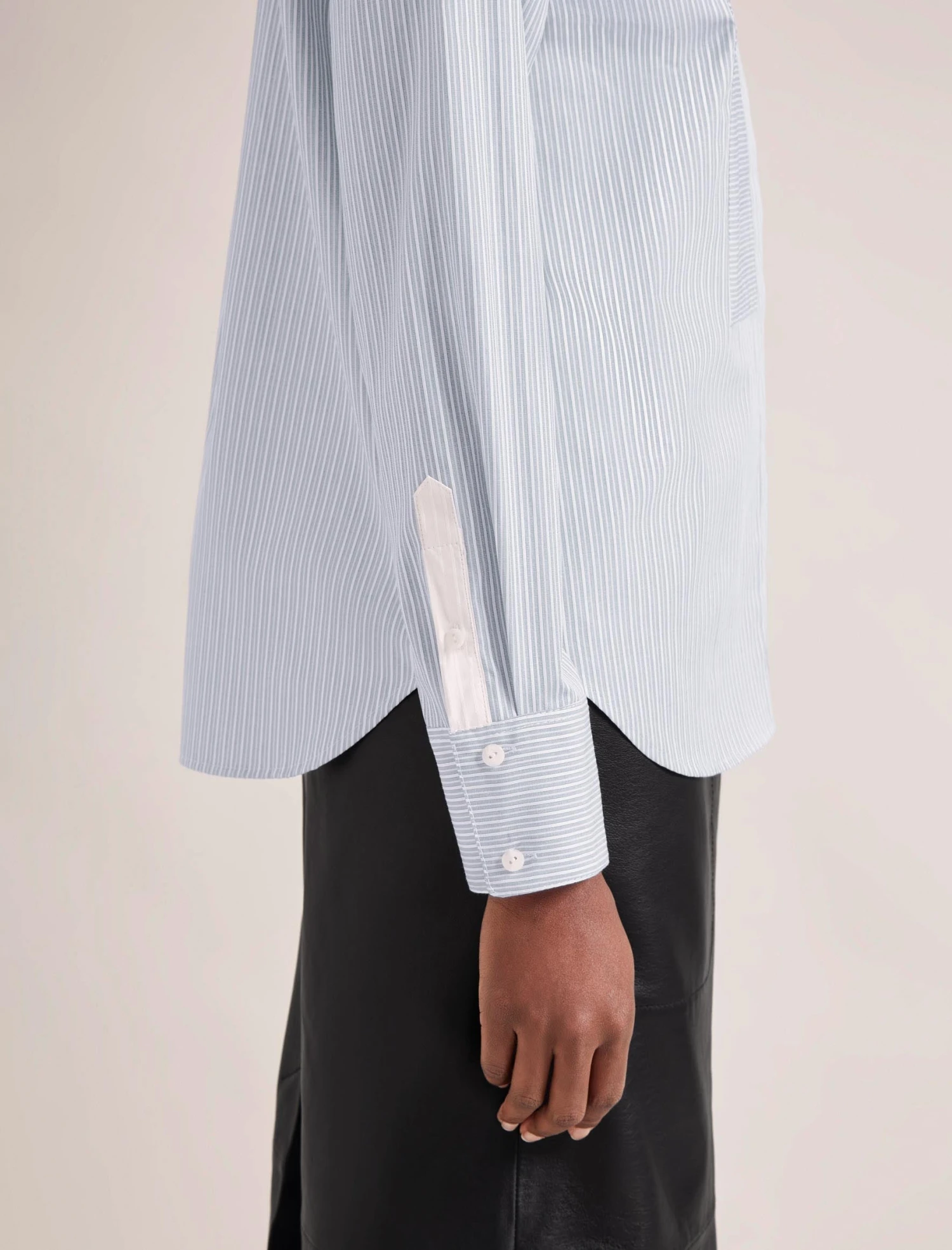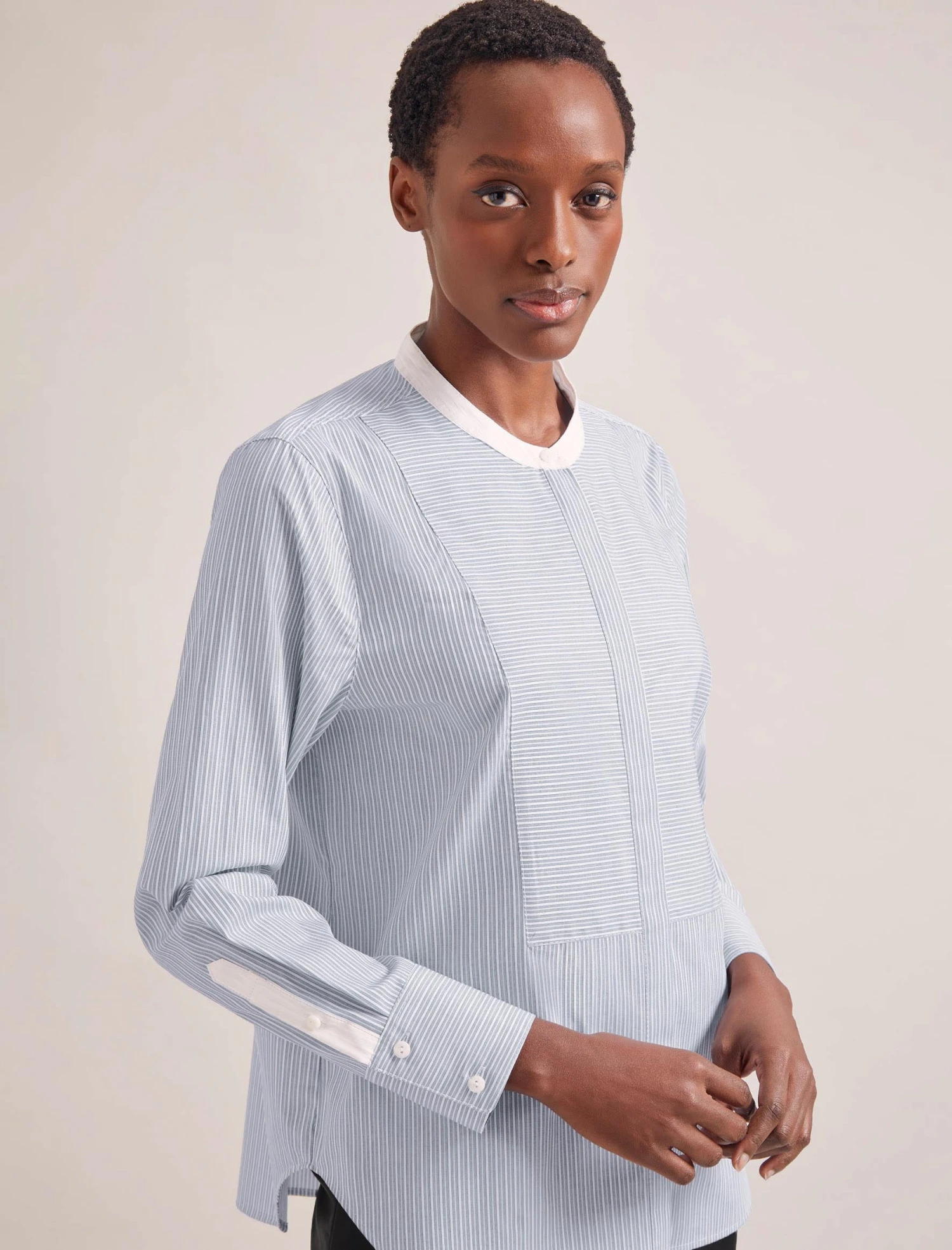 There’s a plain-speaking chic about the season’s most wearable looks. Take our Sefton organic cotton striped shirt. Worn with baggy blue denim and a trench coat it may look simple but on closer inspection, superior details such as the placket sleeve and bib elevate it from basic to boardroom ready.
