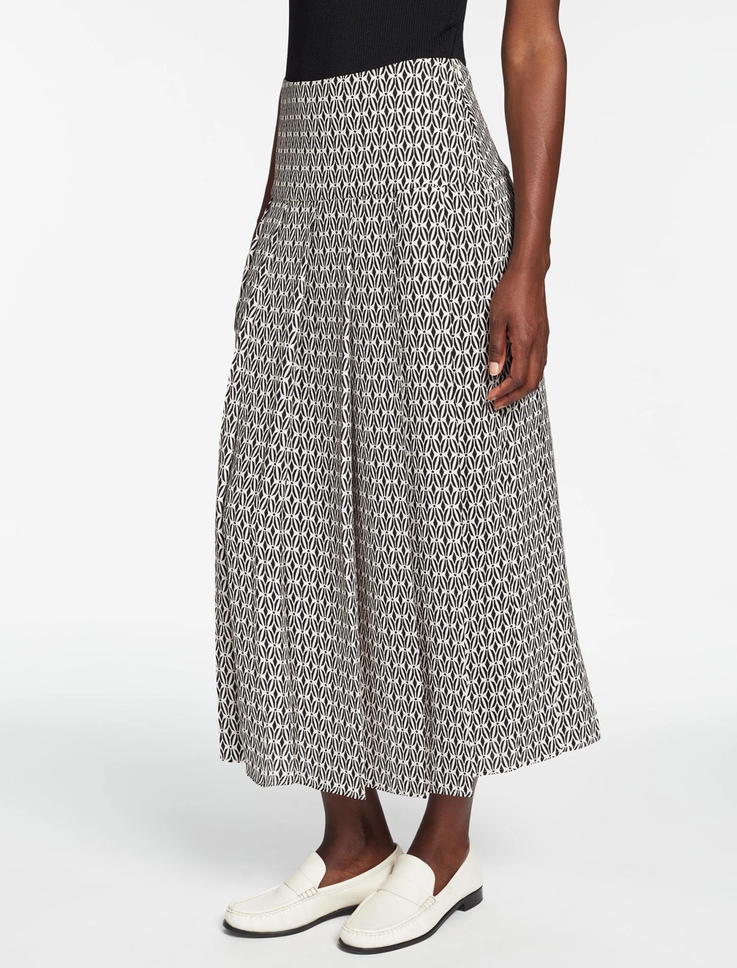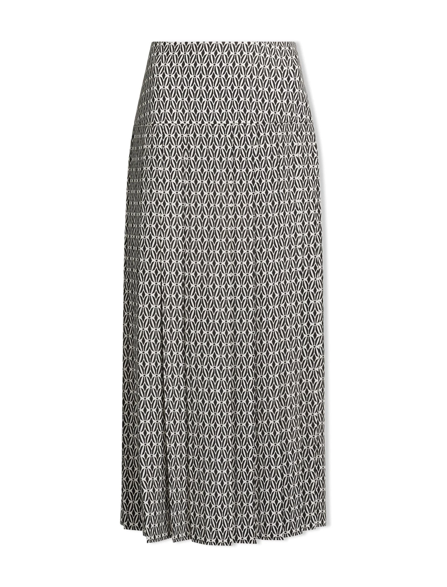 Sienna Maxi Skirt – Ecru Black Trellis Print
