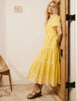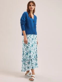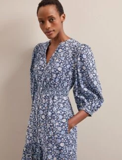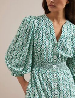 Aspen Cotton Blend Maxi Dress – White Green Tudor Rose Print