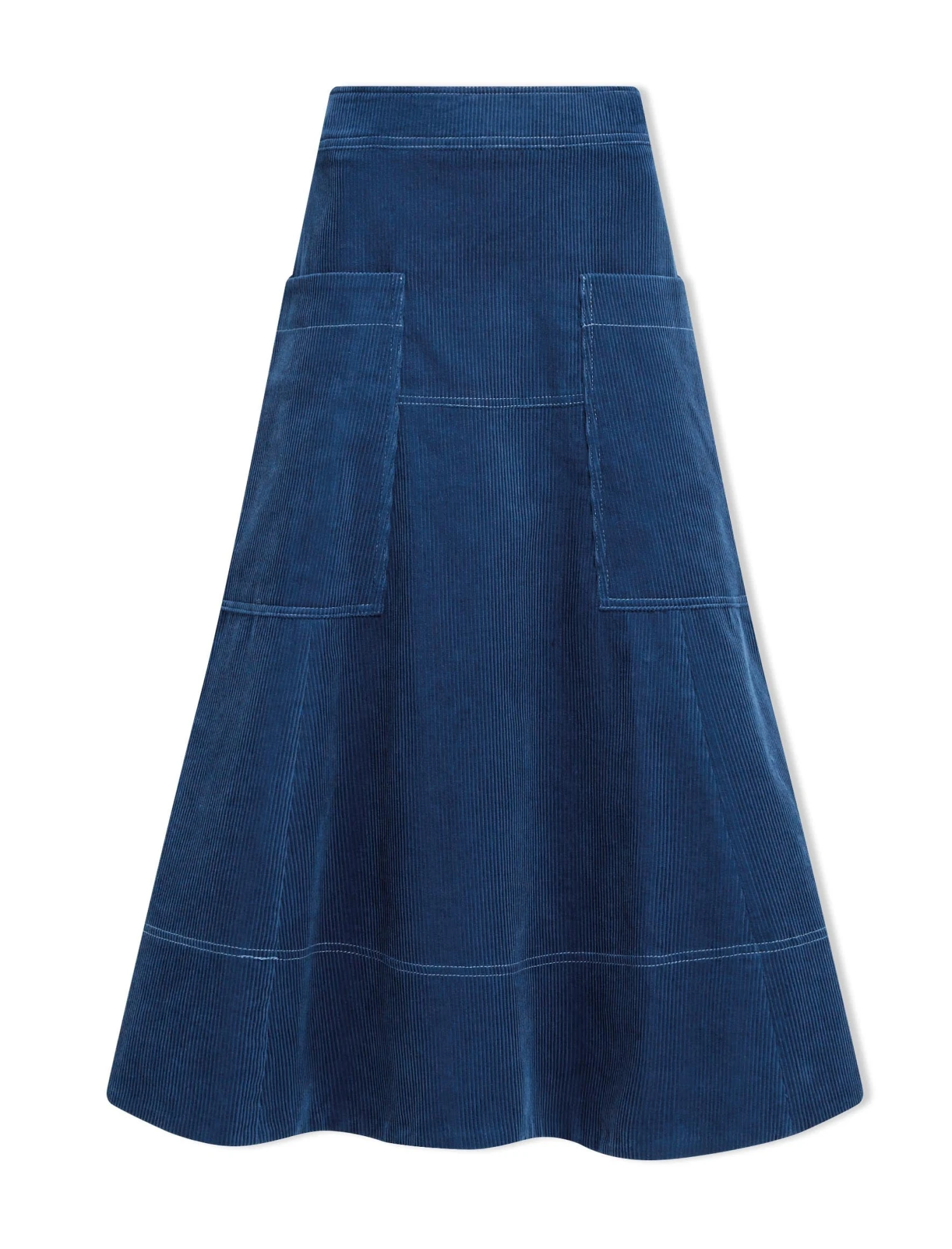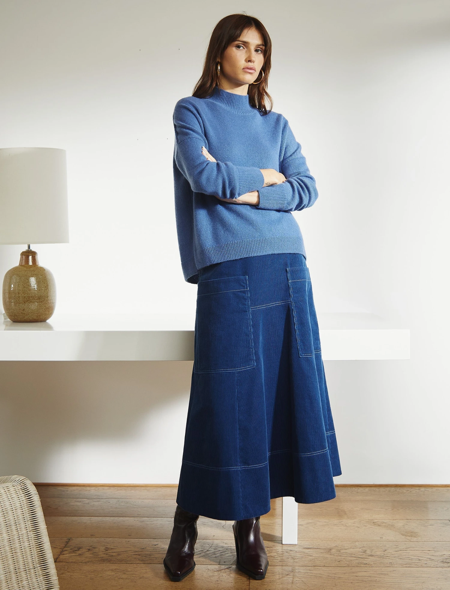 With 90s cargo trousers and skirts continuing to enjoy the fashion spotlight, our Simone maxi skirt offers a luxe twist. Cut from 100% organic cotton corduroy, it has the trend’s signature oversized patch pockets and contrast overstitching. Complement the stitching with one of our beige knits – cue Janice or Janie – and a trainer and that’s your downtime days sorted.