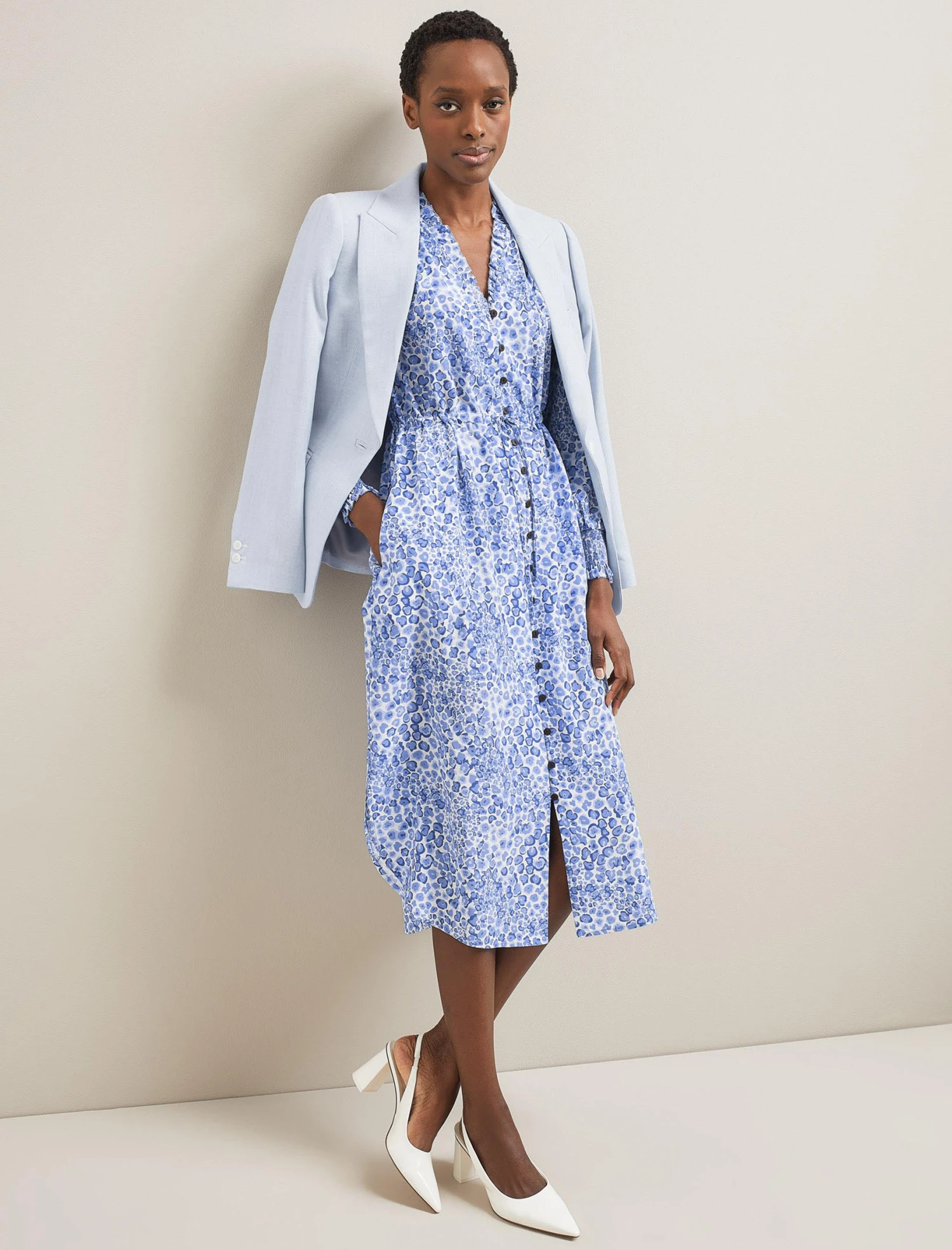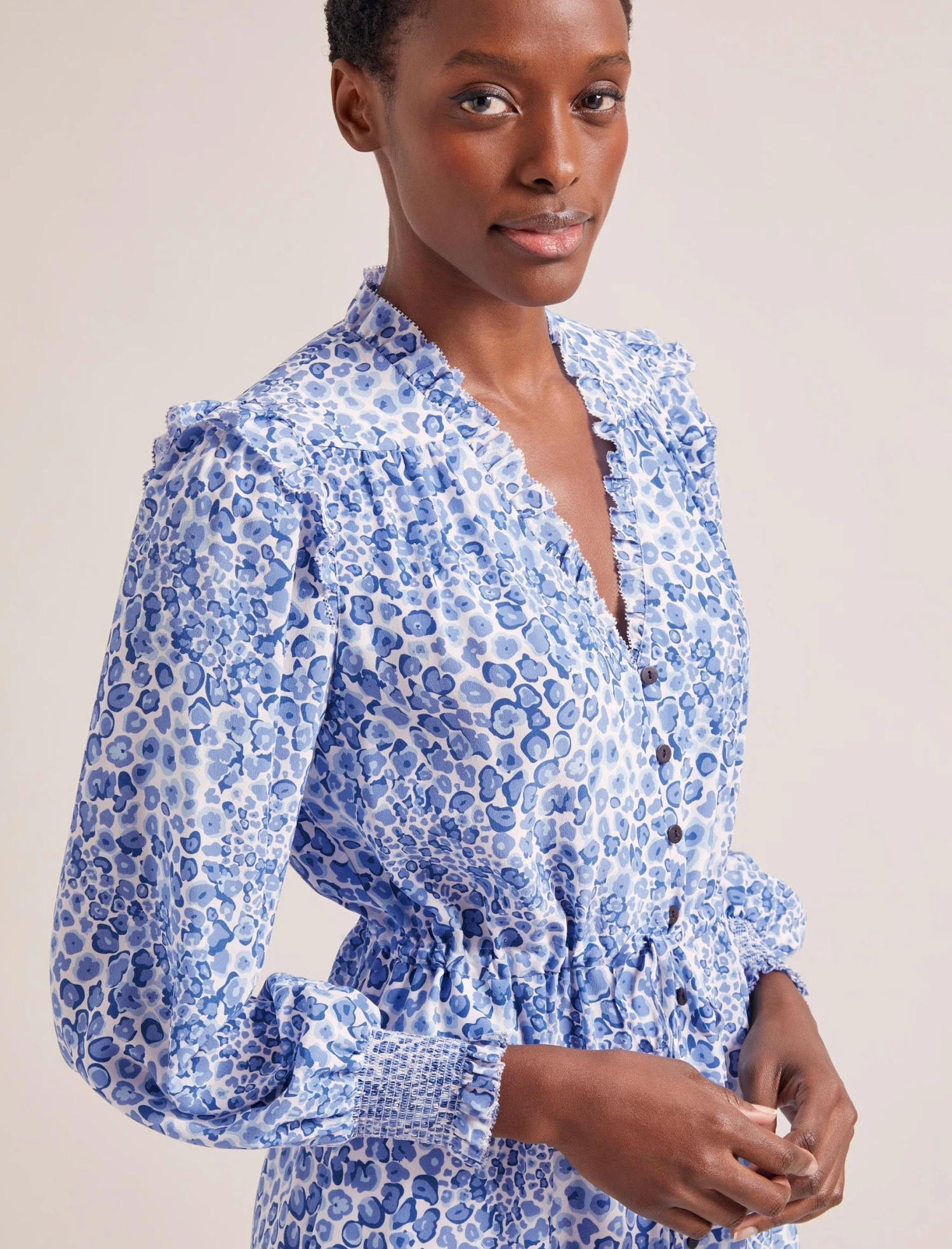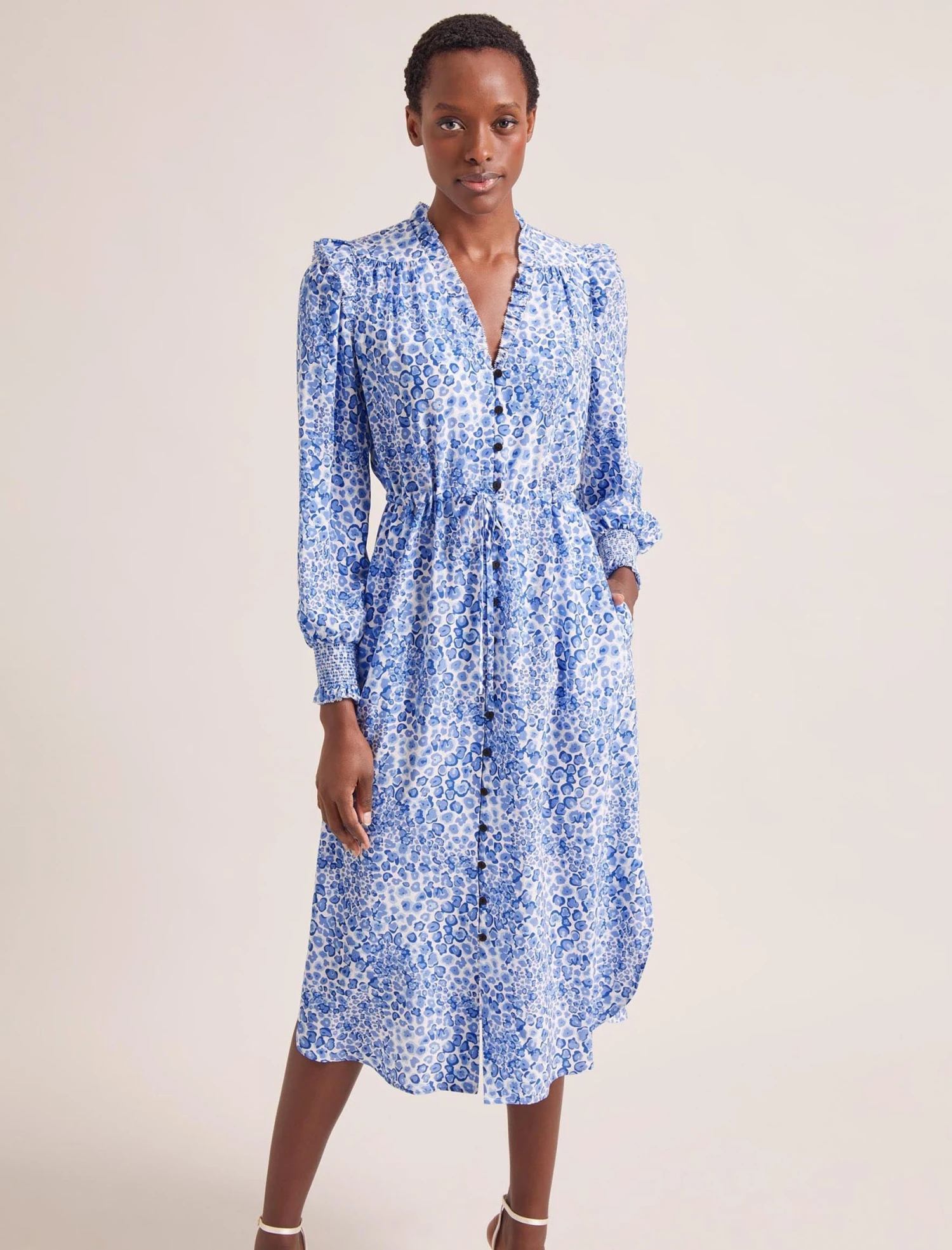 The Stella dress has earned iconic status thanks to the combination of its easy wearability and luxe feminine detailing. Cut from 100% silk crepe de chine, it has rouleau summarys, pretty shirred cuffs, and eyelash frill edging while the adjustable drawstring waist can be cinched in or worn loose and airy for a more relaxed look.