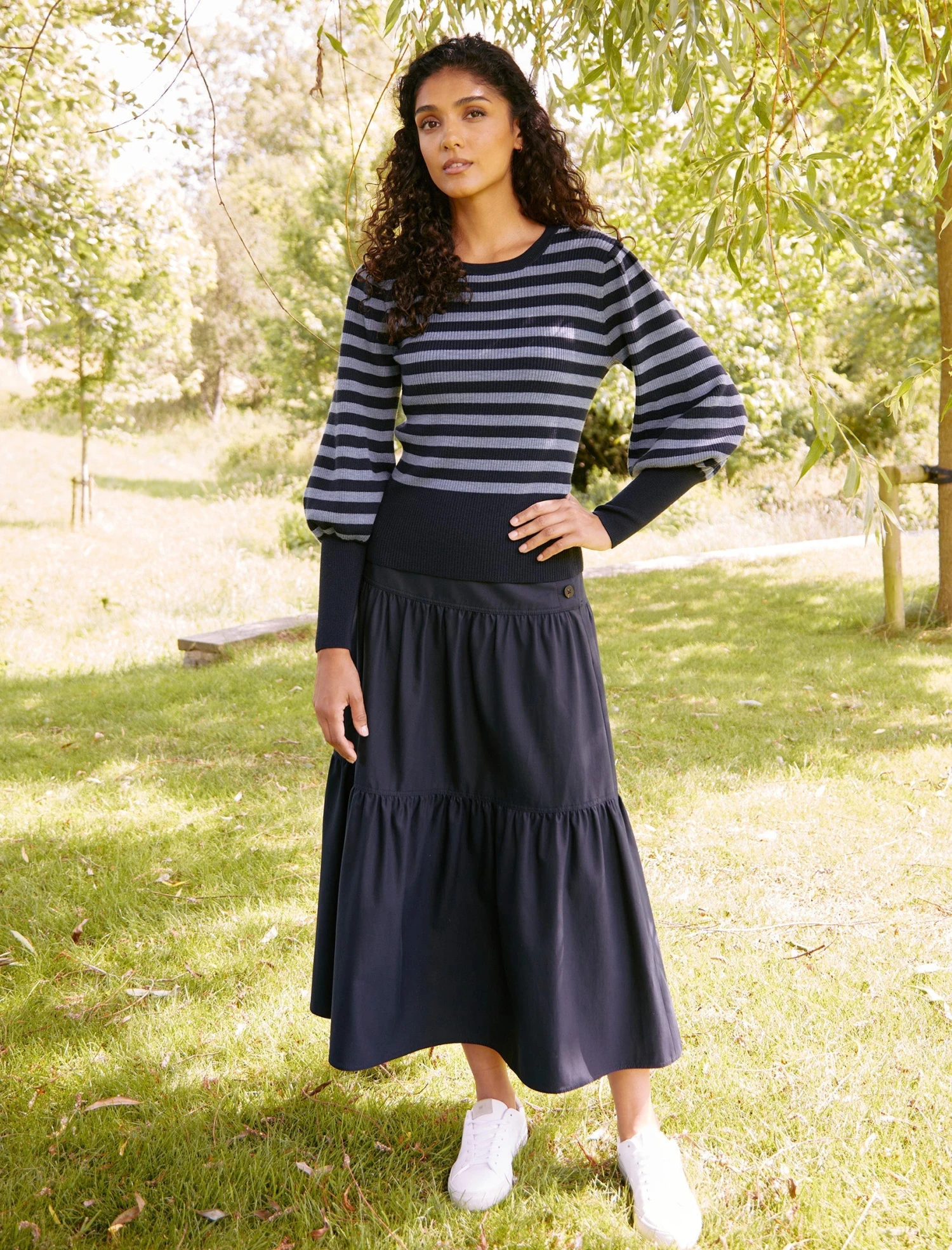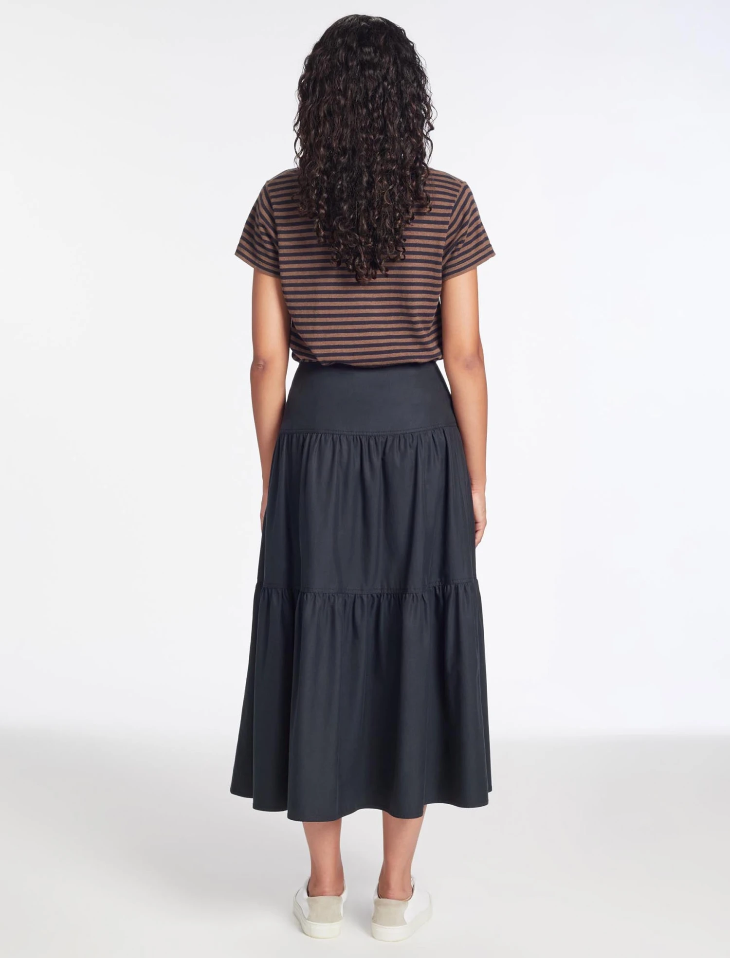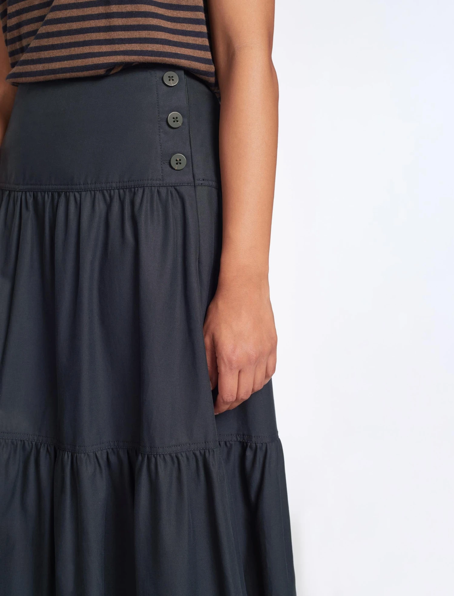 Our tiered Sylvia skirt in a crisp cotton twill is a downtime-dressing staple. Ideal for those weekend days when you want something a little more feminine but with zero flounce, it has side summary detailing and falls to a maxi length. Wear with a sandal and a tee, swapping to a long-sleeved T-shirt and trainer as the leaves begin to fall.
