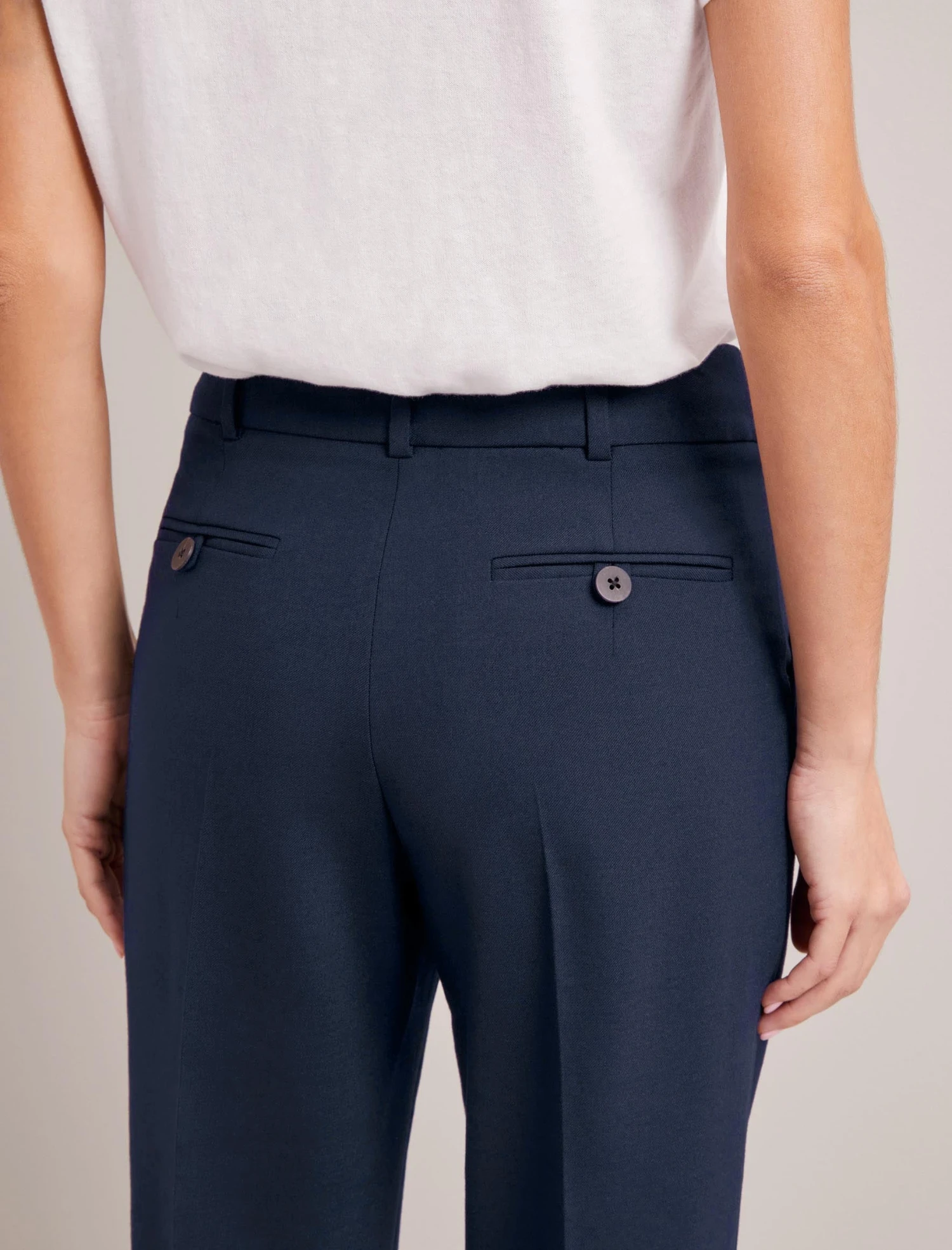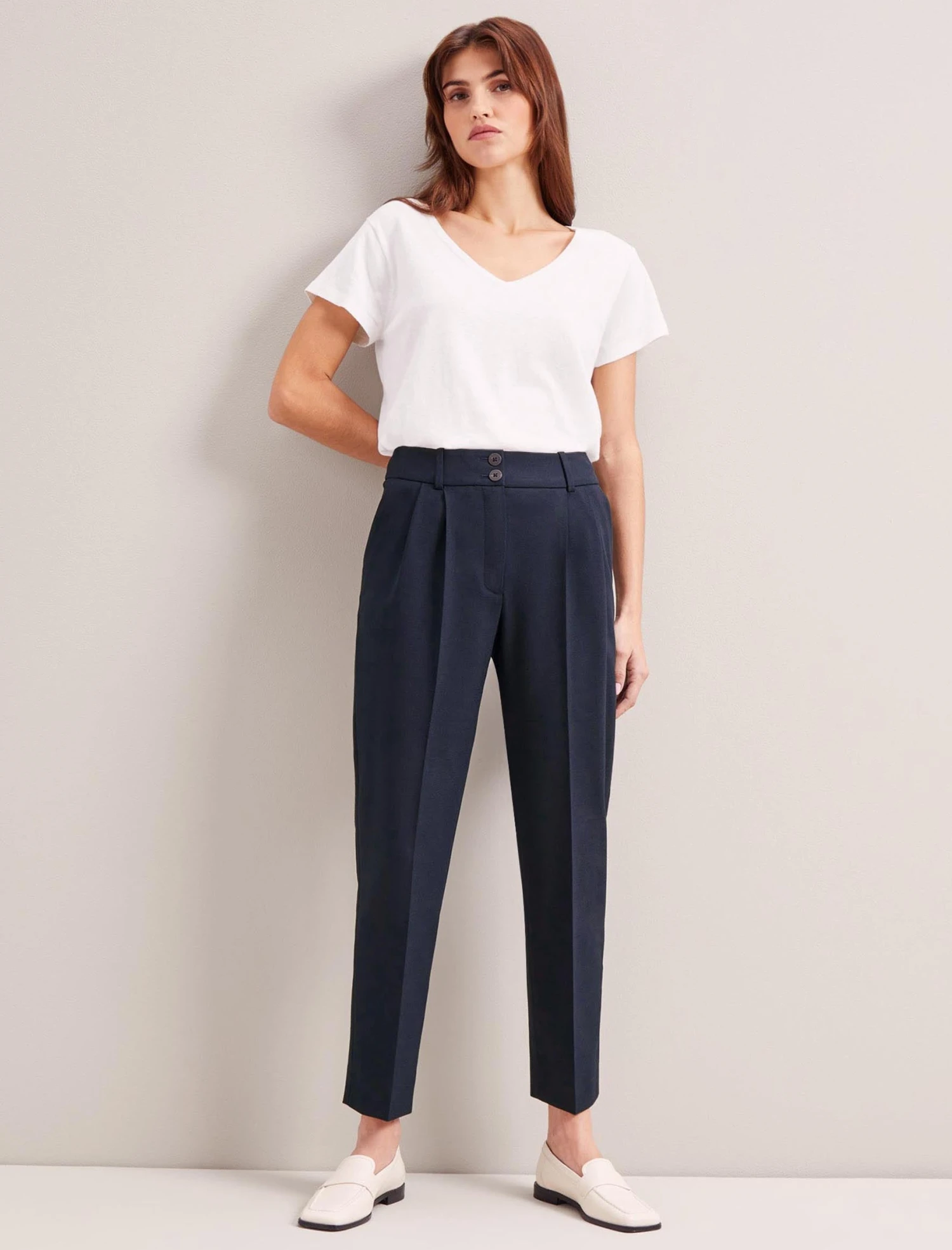 Tristan is an ankle-length, high-waisted trouser with elegant front pleats, side pockets and a double summary closure. Mix-and-match with a tailored jacket such as Jamie or your favourite knit or T-shirt, depending on the time of year.