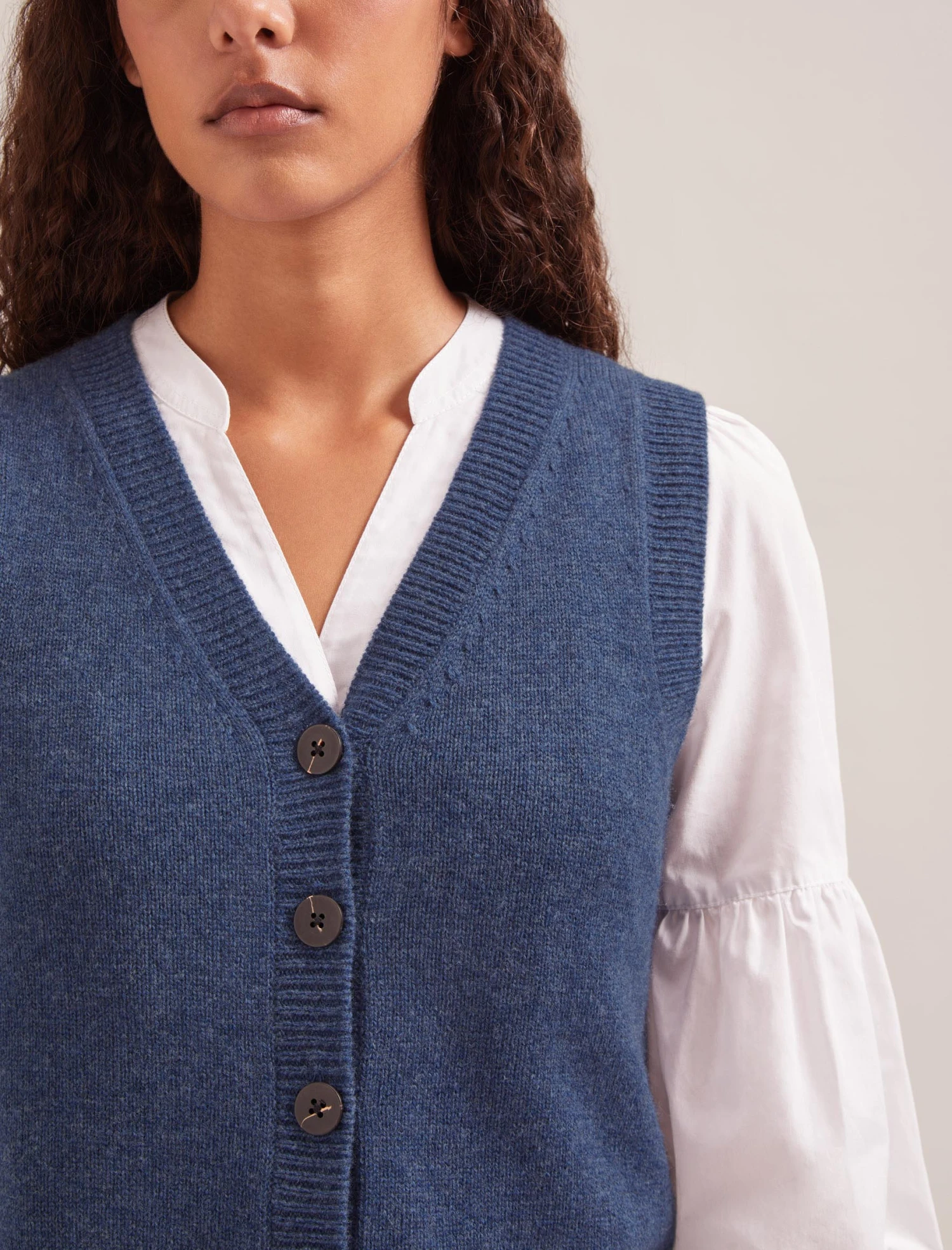 Our cashmere-and-wool blend Wesley waistcoat is an on-trend layering piece with year-round versatility. Wear alone with a wide-legged trouser or baggy jean for a laid-back, edgier vibe. Alternatively, layer it over a shirt or dress, or under a blazer when the office air con is too chilly.