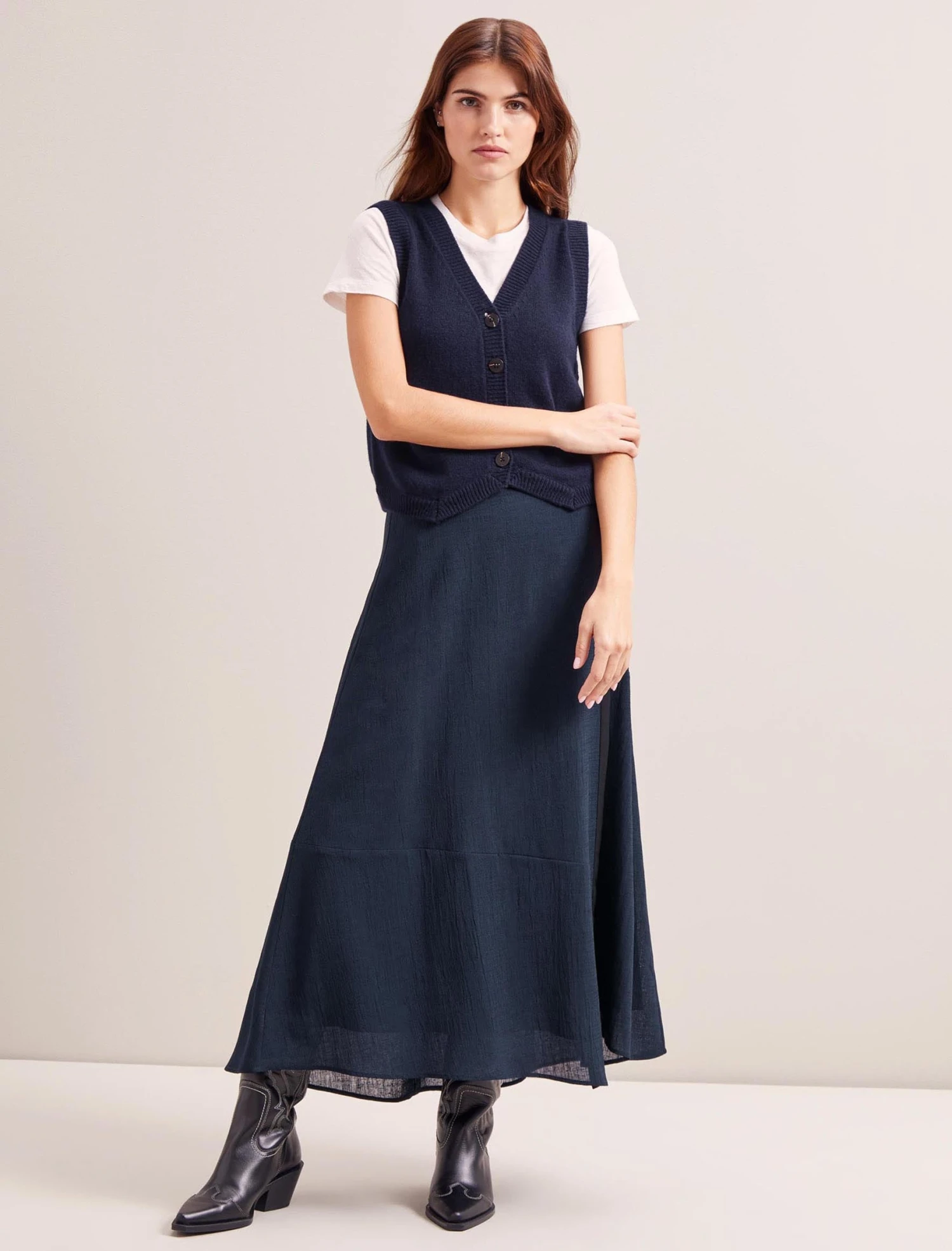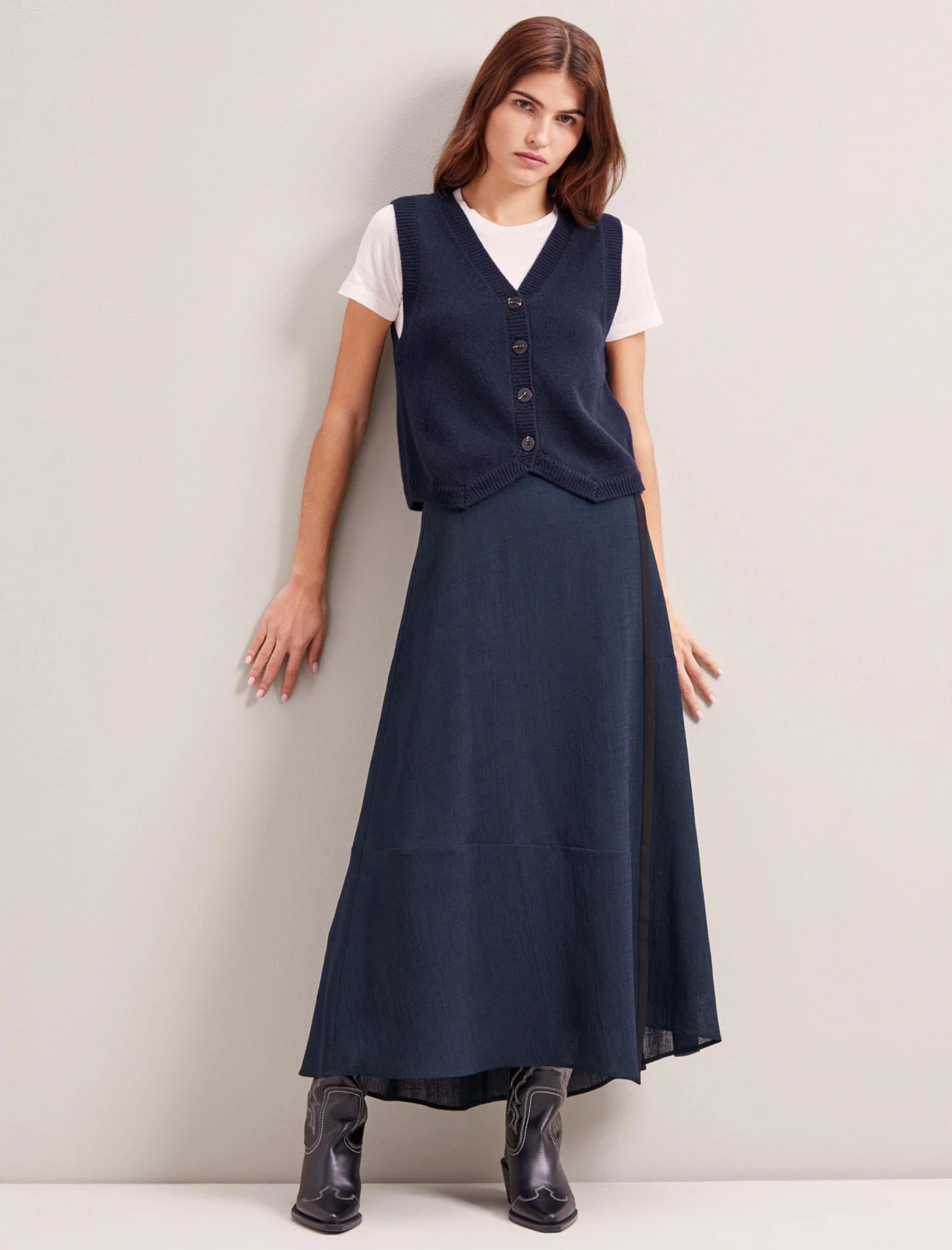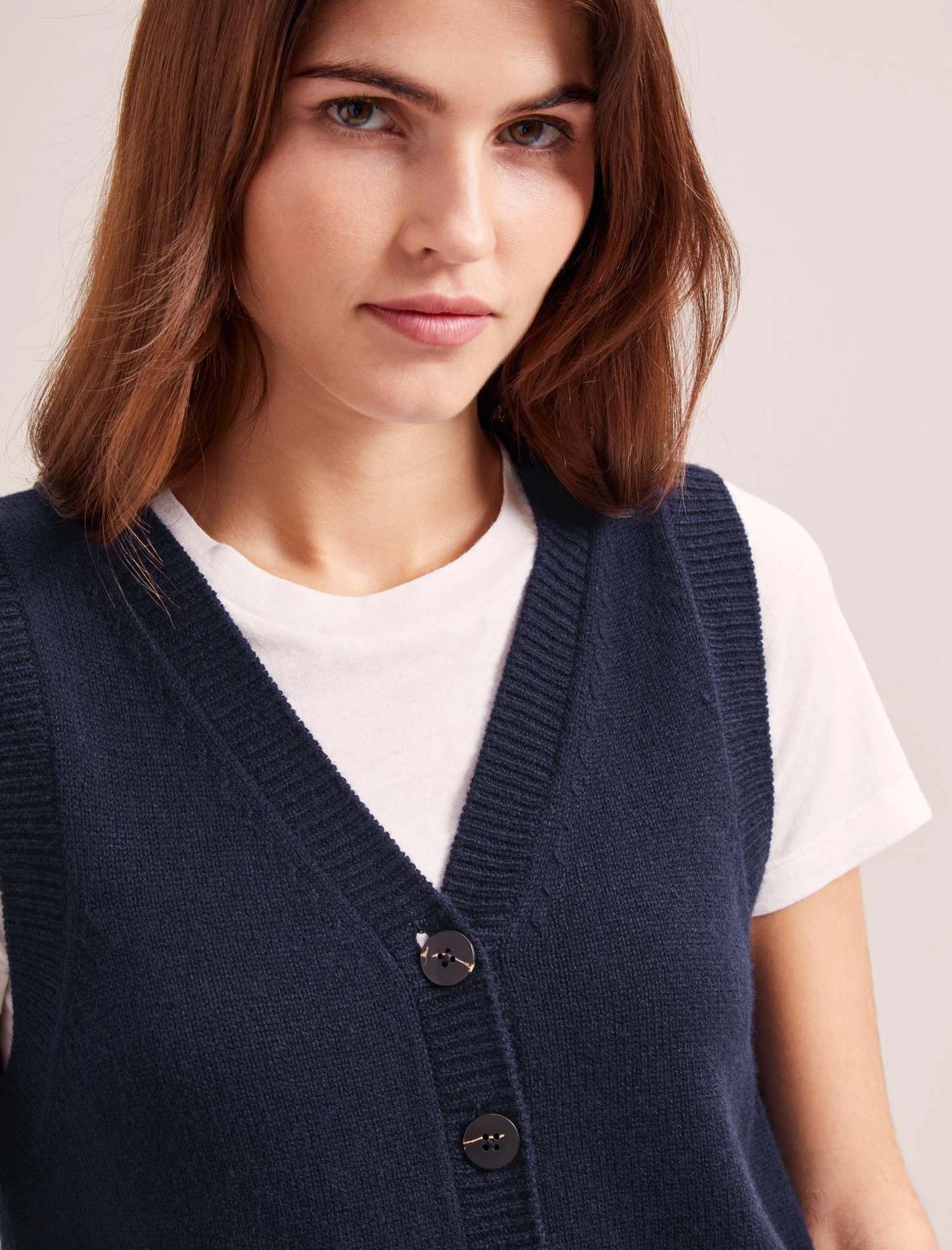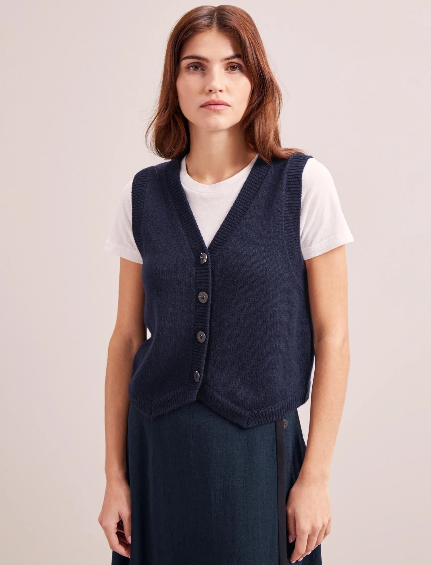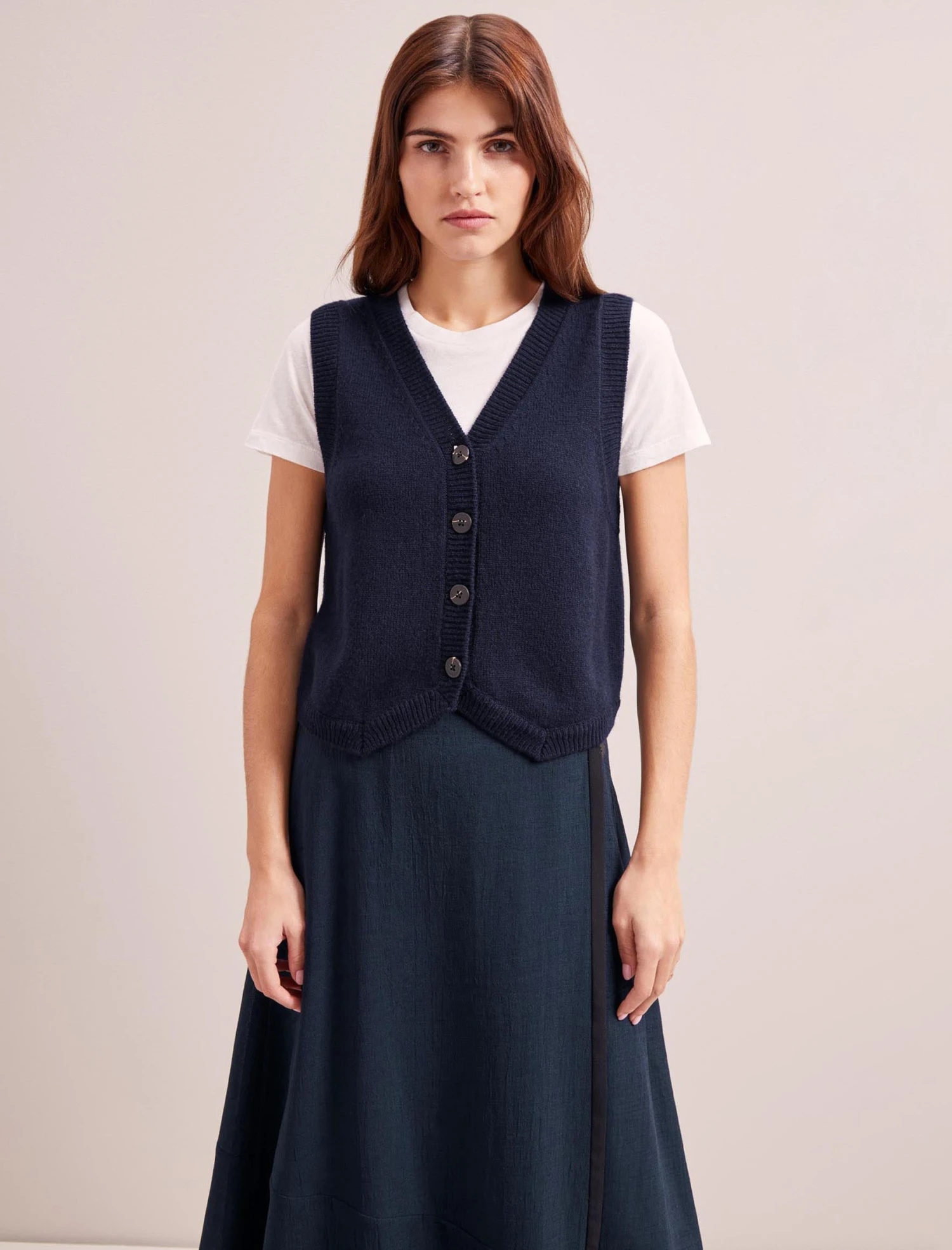 Our cashmere-and-wool blend Wesley waistcoat is an on-trend layering piece with year-round versatility. Wear alone with a wide-legged trouser or baggy jean for a laid-back, edgier vibe. Alternatively, layer it over a shirt or dress, or under a blazer when the office air con is too chilly.
